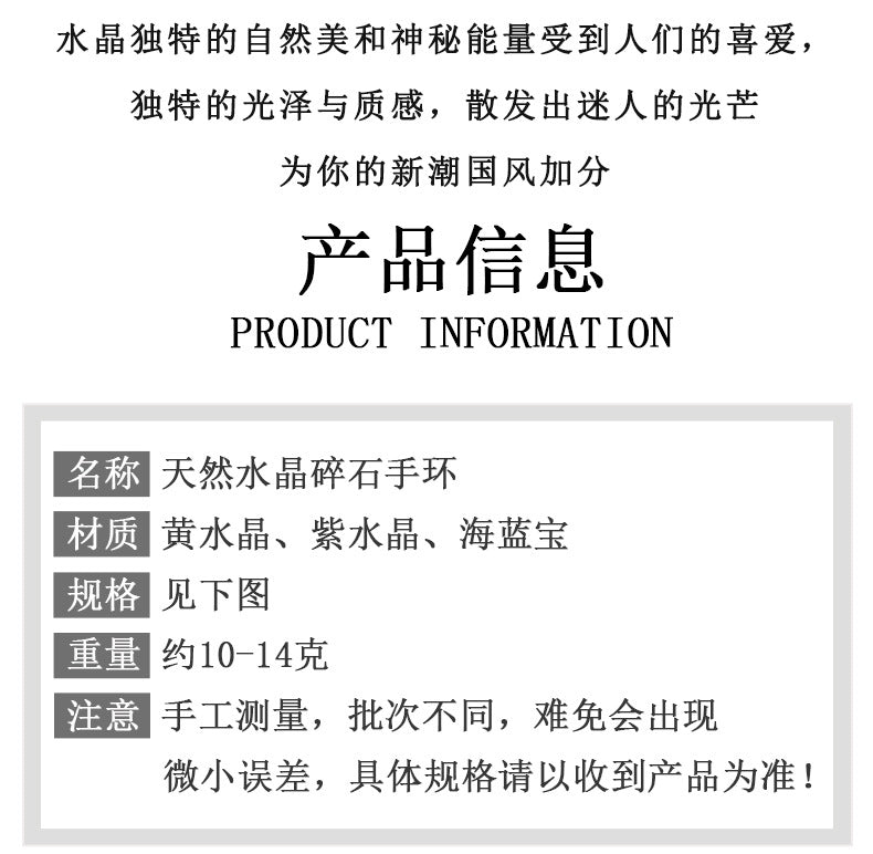 水晶,自古被视为天地精华所聚,《山海经》中载有“玉山多水晶”,其晶莹剔透,蕴藏宇宙能量。此款天然水晶碎石手链,以海蓝宝、紫水晶和黄水晶为材,碎石不规则形态,宛如自然造化之笔,每一颗都承载着大地之灵。正如《易经》所言: