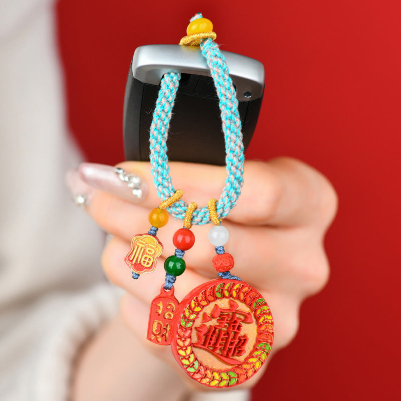 Handcrafted from high-content cinnabar, this keychain channels ancient energy to attract prosperity and guard against negativity.