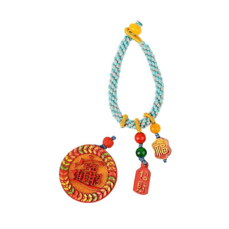Each keychain features unique hand-painted details in imperial red sand, symbolizing wealth and royal blessings.