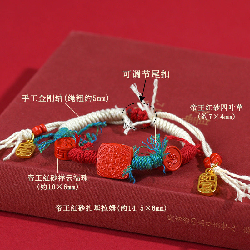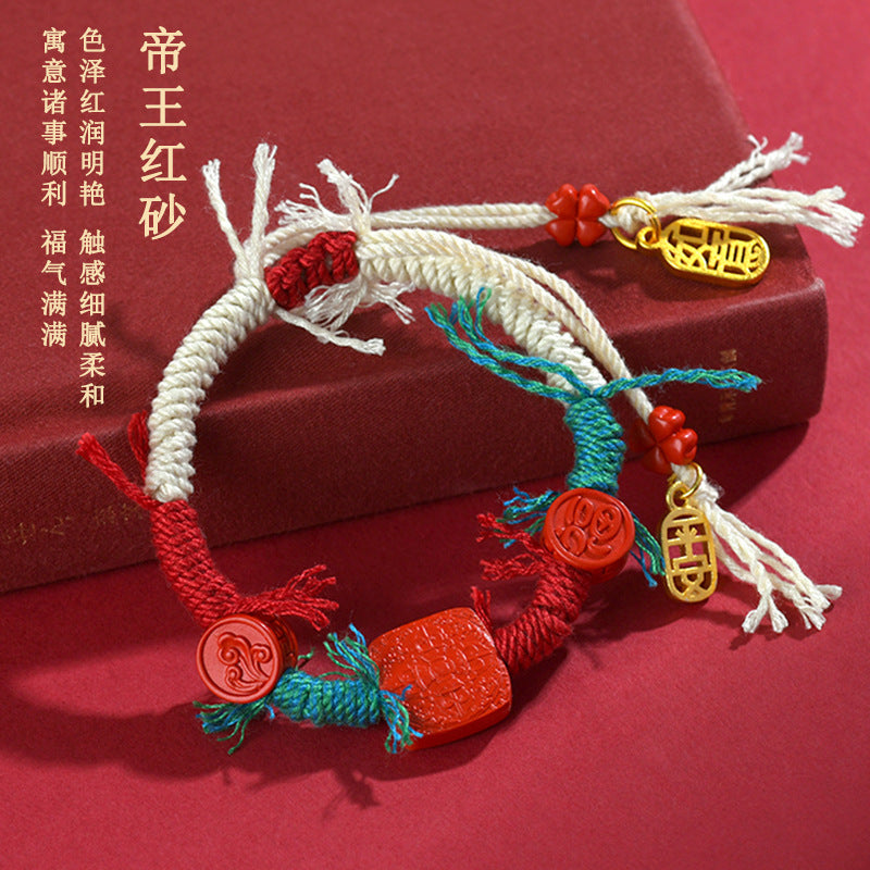 Cinnabar, with its fiery red essence, embodies this relentless vitality. When worn, it inspires inner strength and resilience, helping the wearer navigate life's challenges with courage and grace. The handwoven design, reminiscent of interconnected destinies, echoes the Taoist principle of harmony between yin and yang—balancing opposing forces to achieve peace and abundance.