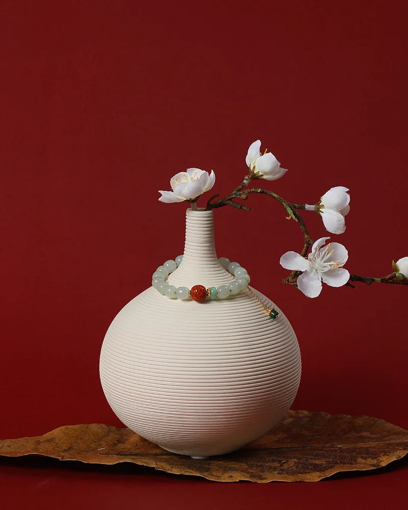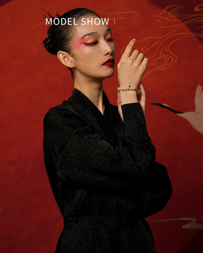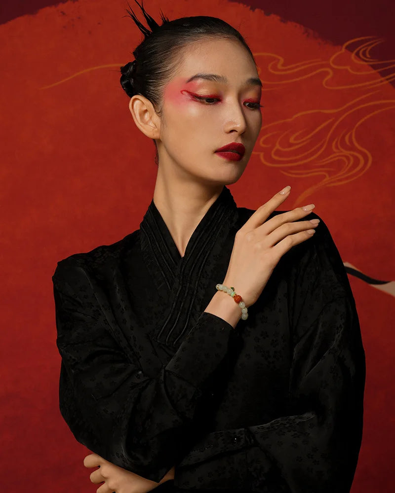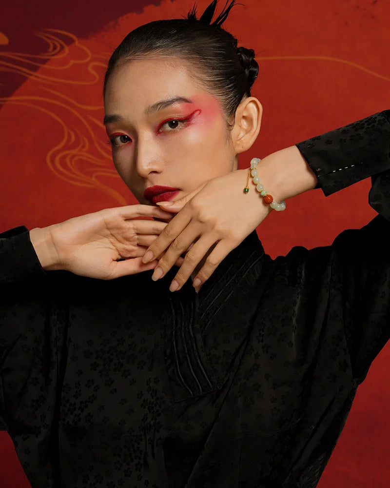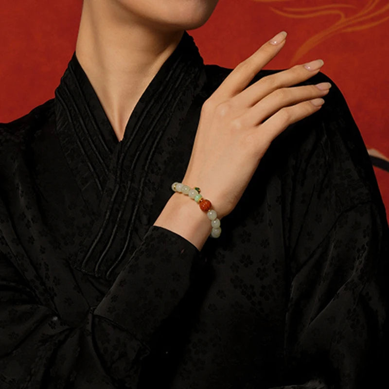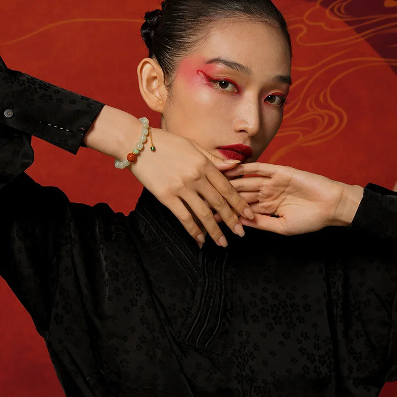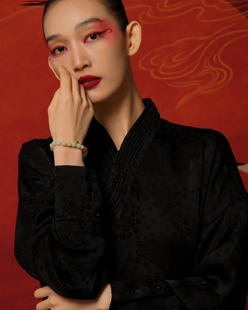 In the language of Chinese classics, jade always carried moral weight. As Confucian thought praises jade as the symbol of benevolence and uprightness, white jade in this bracelet stands for clarity of heart and peaceful bearing. The Book of Changes (I Ching) tells us, in effect, that harmony with heaven and earth produces strength: "Heaven's movement is vigorous; the gentleman makes himself strong and untiring." Worn upon the wrist, white jade offers a subtle reminder to cultivate inner poise and steady action.