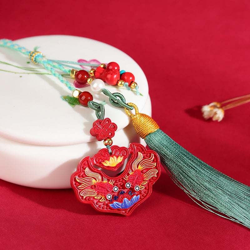解決方案:天然朱砂雙魚錦鯉鎖掛件的風水效用
