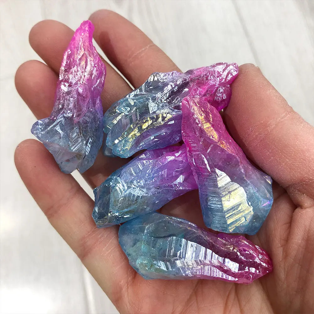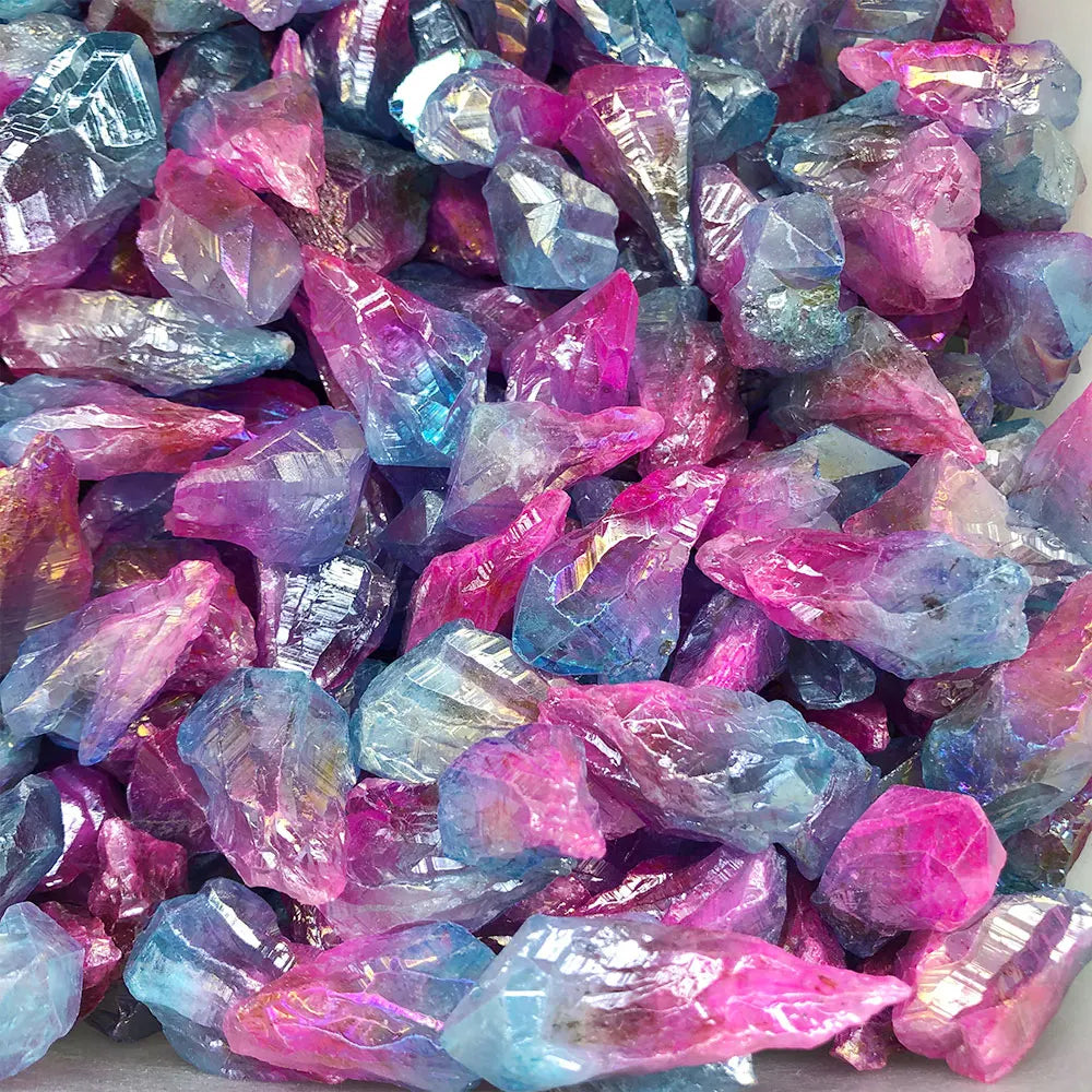 放在水族箱岩景旁太出片了!粉蓝渐变在LED灯下有极光般的虹彩,既净化氛围又提升整体质感。随机款也很惊喜,每一面晶体纹理都不同,真的很有灵性。