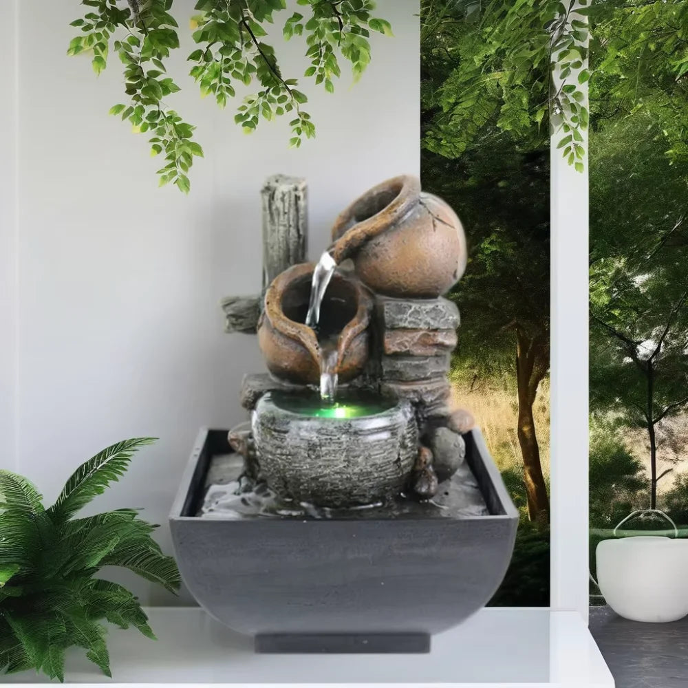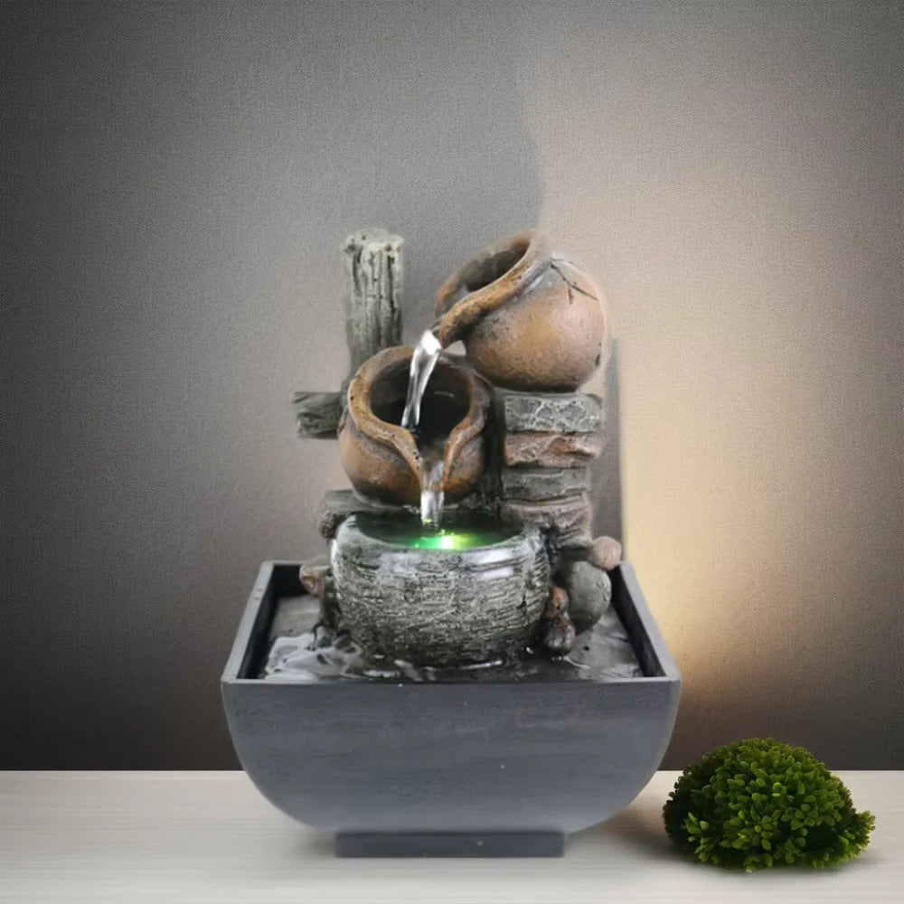 自古风水学以“水为财”见长,流水宜缓则气息绵延。此款三层桌面流水摆件汲取古法山水意象,化岩为形、以水为道,三叠瀑布象征“天、人、地”三才相合,水势连绵如经脉畅通,可纳气聚财。
