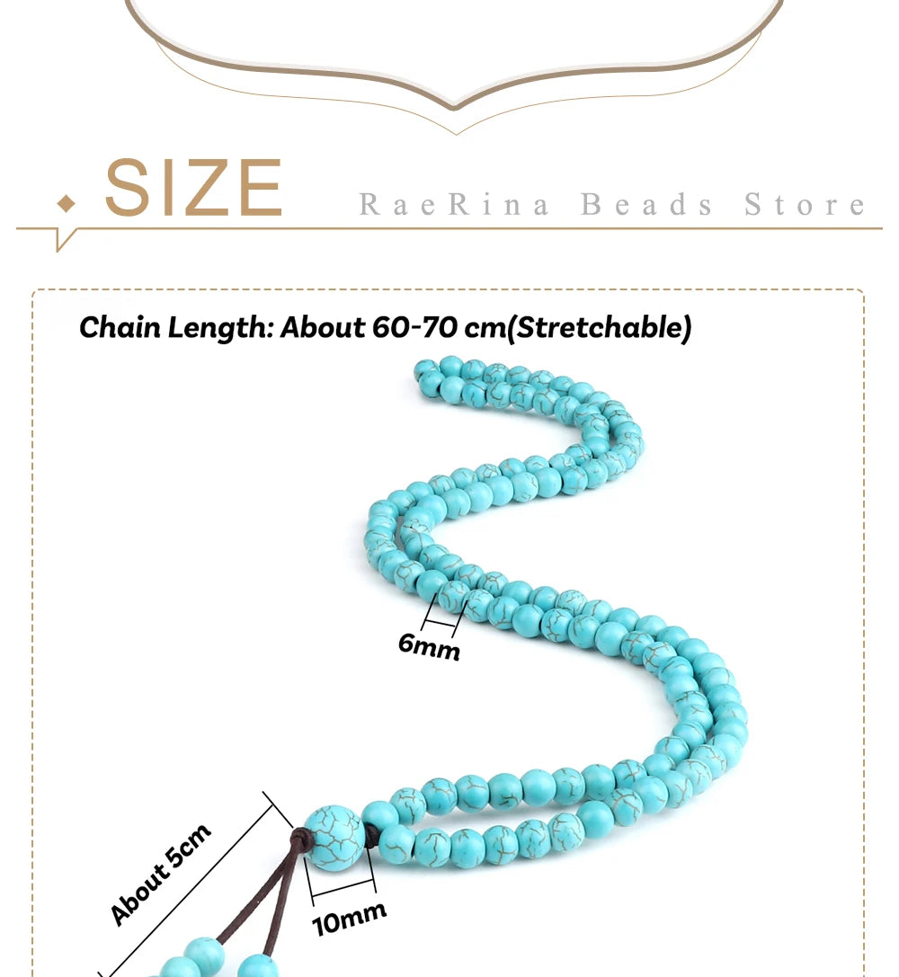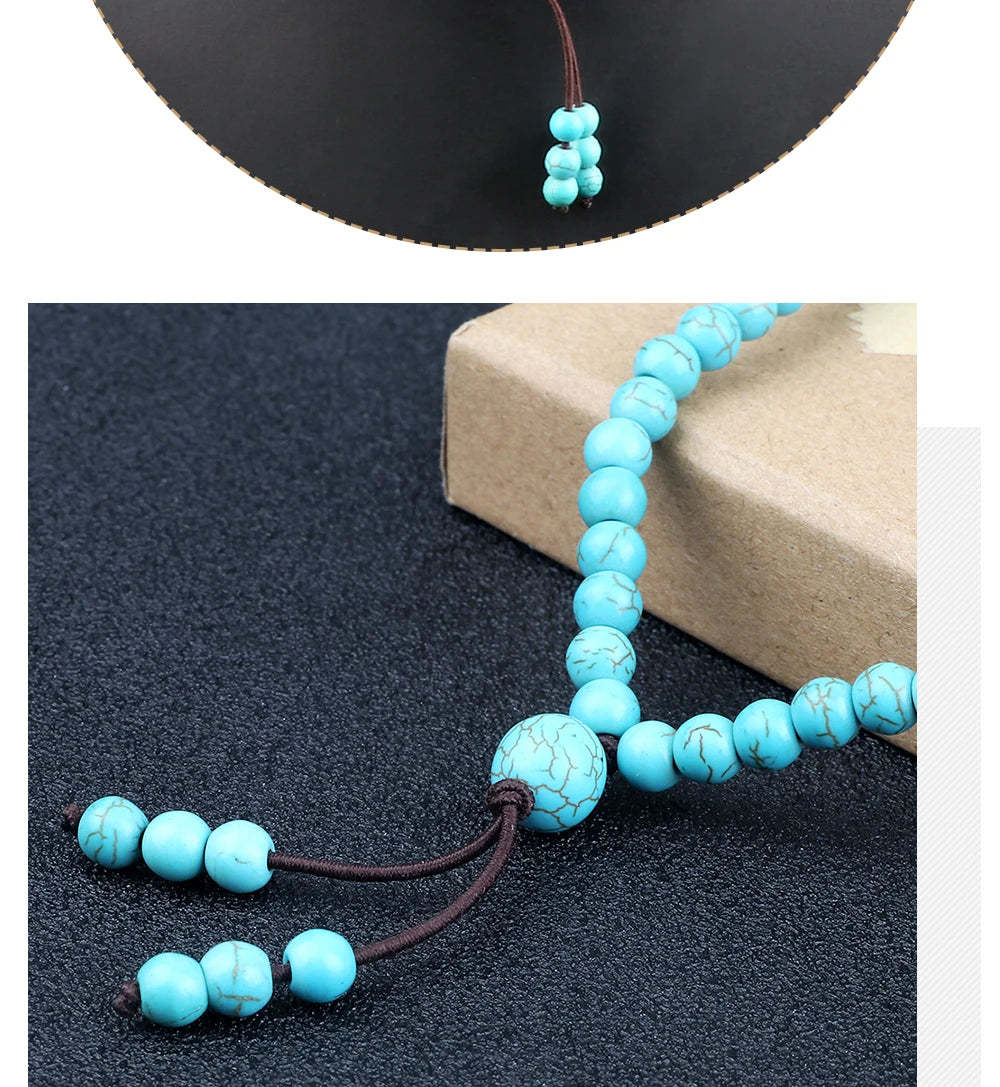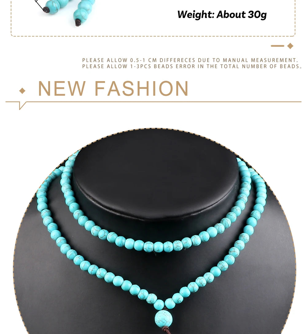 这款念珠以天然浅蓝石珠手工串制,珠径6mm,握感轻盈不累赘;弹力绳结构让它既可为长项链,也可多圈缠腕成为灵动手链,护持你于日常与修习之间自由切换。