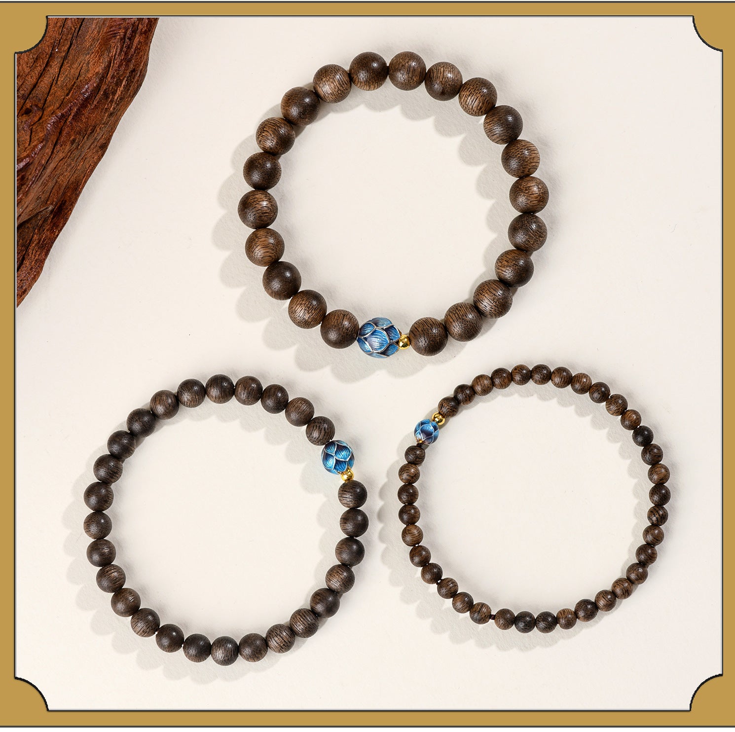 This bracelet, with its lotus motifs, reminds wearers that challenges can lead to profound growth and clarity. Each agarwood bead, carefully selected and polished, represents a step on the path to mindfulness, while the cloisonné lotus beads add a touch of celestial artistry, reflecting the interplay of light and shadow in life.