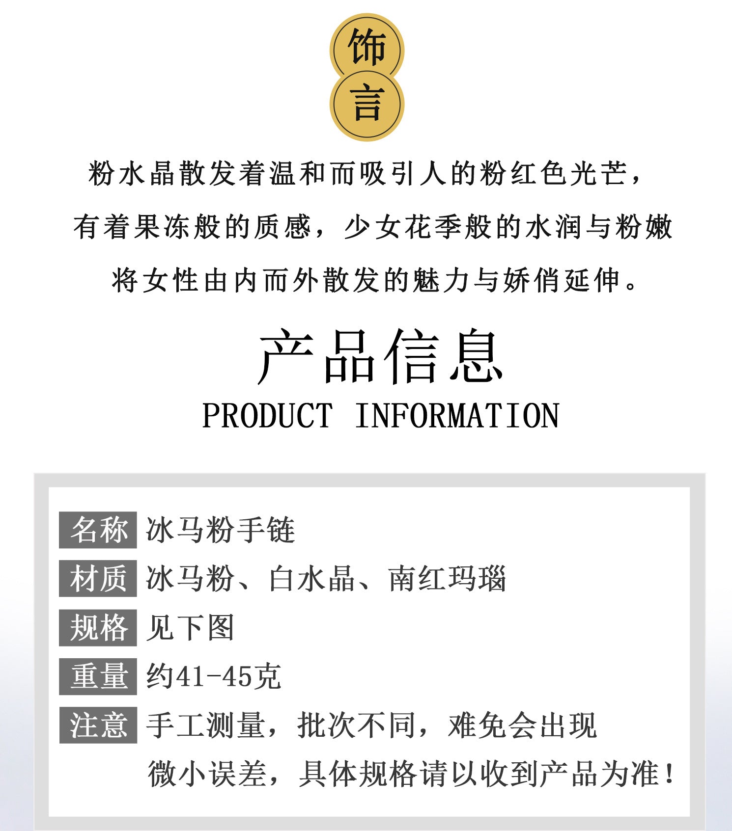 | Material | Natural Pink Crystal |