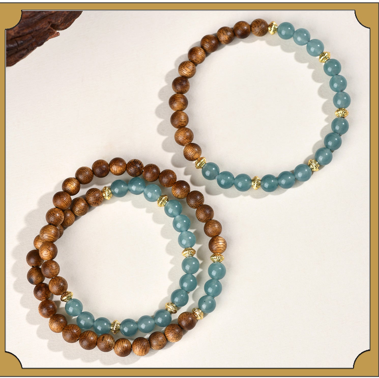 In the heart of ancient traditions, Blue Water Jade Chalcedony and Agarwood have long been revered as symbols of purity and spiritual elevation. Blue Water Jade, with its translucent azure depths, is often called the "Stone of Wisdom" in Eastern lore, reflecting the clarity of a calm mind. Agarwood, known as "the wood of the gods," has been used in Buddhist rituals for centuries to purify spaces and minds, its fragrance guiding practitioners toward inner stillness. This Blue Water Jade Chalcedony Agarwood Bracelet merges these elements into a harmonious design, evoking the serenity of a temple garden and the wisdom of timeless teachings.