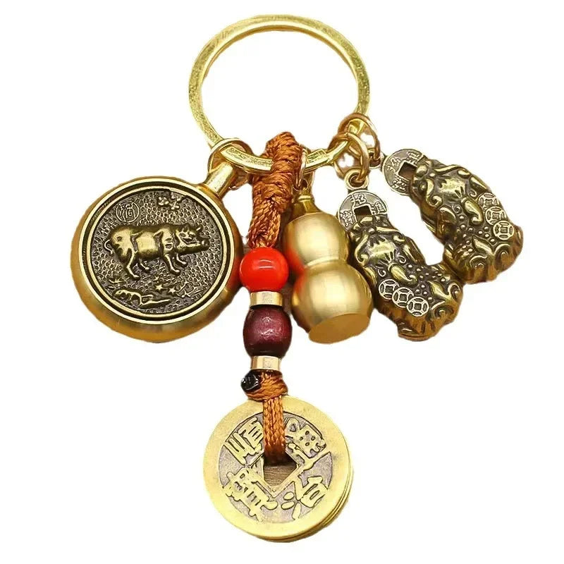 钥匙扣很有分量,铜葫芦和咬钱兽的细节非常立体,转动生肖盘时有种“气场转动”的仪式感。挂在车钥匙上后,驾驶心态更稳,出门也更顺。中国结点缀很有喜气,整体质感超出了预期。
