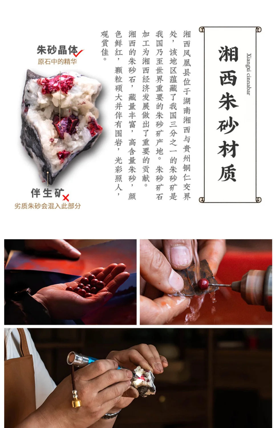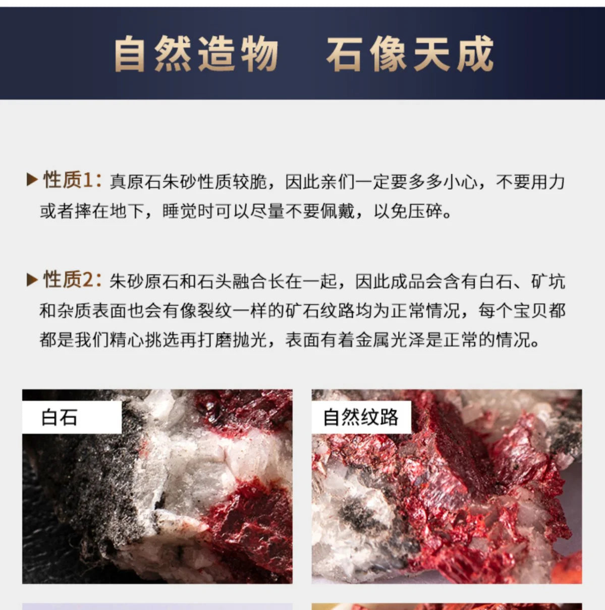 在传统风水观念中,五行需平衡方可生气流通:朱砂承纳火之能,补充勇气与护卫;砂金石与本命佛则协助稳气、吸纳贵人与财运。每一串均由匠人手工穿制,绳结以可调式结头,适配不同腕围,便于日常佩戴与礼赠。