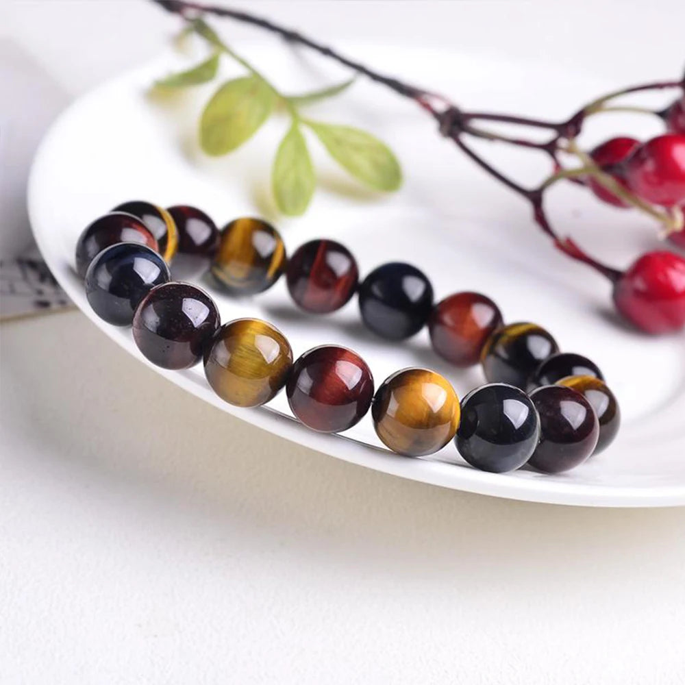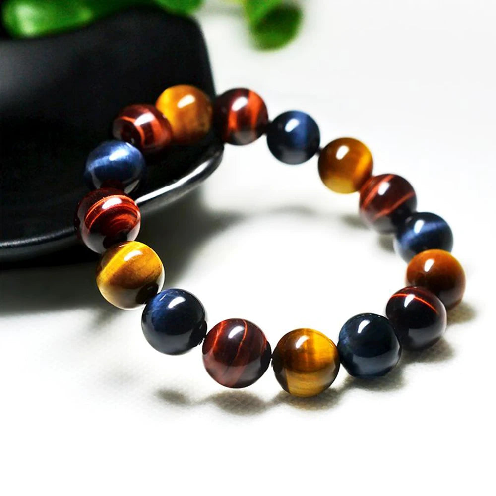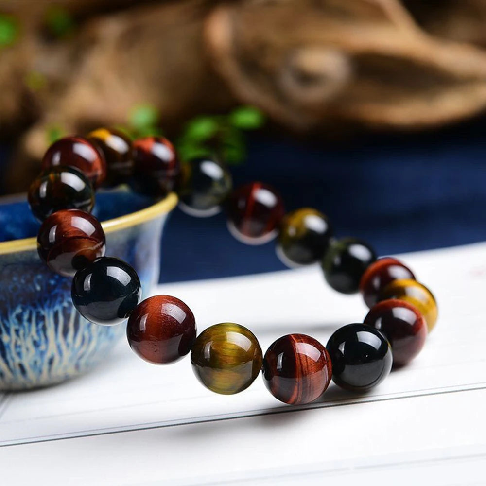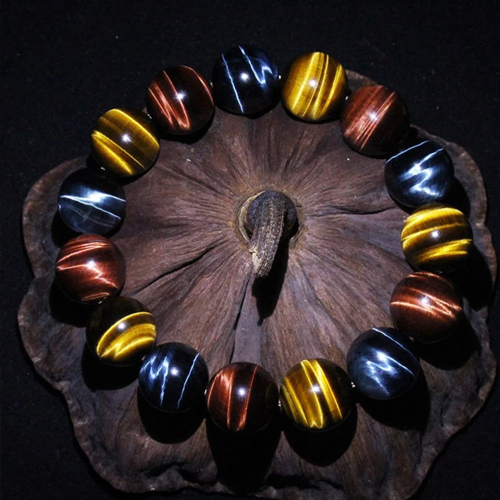 虎眼自古为行者之石,古籍中记载其能凝聚天目之光,化煞为祥。此款彩色虎眼护身手链,以天然虎眼为主料,经匠人打磨成圆润珠体,光线流动处如猫眼般闪烁,被视为“守护之眼”。