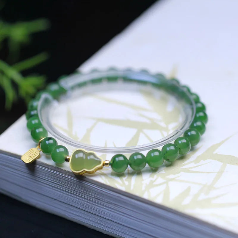 天然半宝石与和田玉风格石材存在天然纹理与色差,因此每一件都会有轻微差异。这种差异正是天然材料的魅力,也使每条手链独一无二。