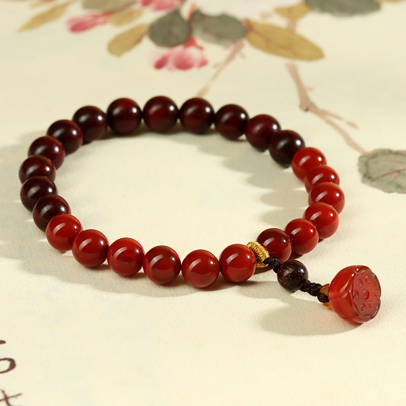 This bracelet serves as a tangible reminder of this cosmic cycle. The crystal beads, with their translucent beauty, resonate with the water element, promoting fluidity and emotional calm. Agate, known for its grounding properties, aligns with the earth element, fostering stability and abundance. Wooden beads, representing the wood element, encourage growth and resilience, while the overall design incorporates metallic accents for the metal element and fiery hues for fire, completing the cycle of mutual generation.