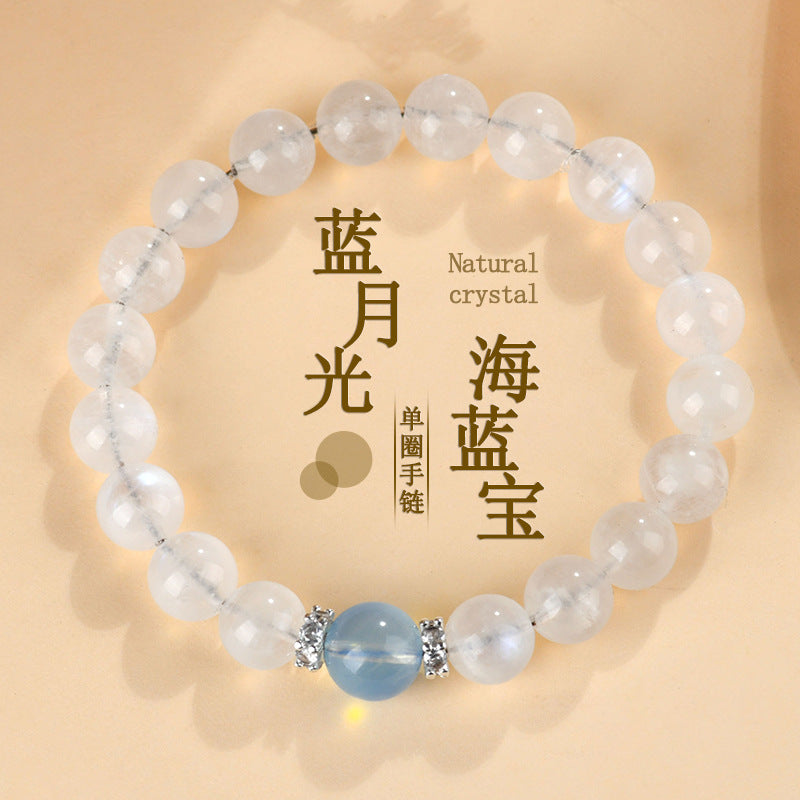In the realm of natural crystals, moonstone and aquamarine have long been revered for their celestial and aquatic energies. Moonstone, known as the "Stone of New Beginnings," reflects the gentle glow of the moon, while aquamarine, the "Treasure of the Sea," embodies the tranquil depths of water. This Natural Blue Moonstone Aquamarine Bracelet harmonizes these elements, creating a piece that resonates with the ancient wisdom of balance and protection.