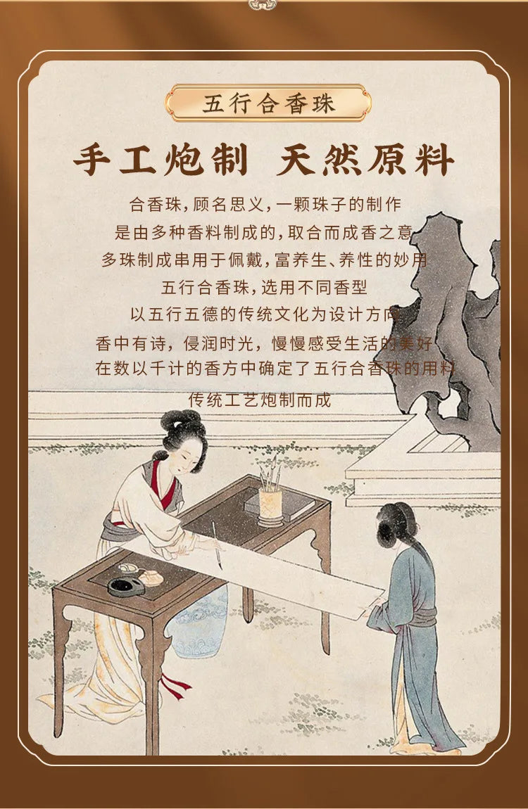 In classical Chinese thought, objects are valued not only for their appearance but for their capacity to harmonize human life with the larger order. The Daoist maxim dao fa zi ran — 'the Way acts in accordance with nature' — suggests that an item made of living wood and gentle scent can help one return to natural rhythm. This bracelet follows that lineage: Hexiangzhu's aroma calms the nervous edge of modern haste, while the roundness of its beads echoes the cyclical movement of heaven and earth.