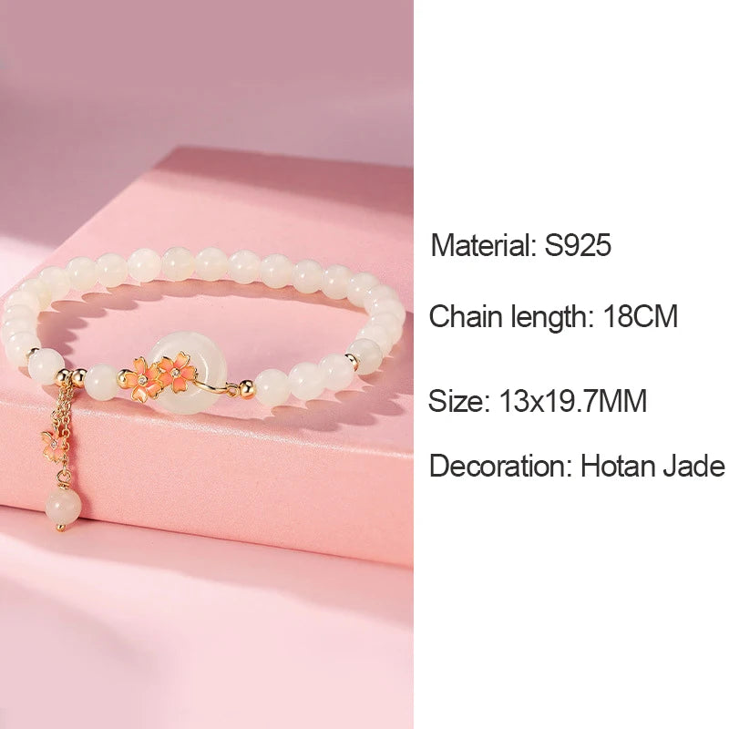 This bracelet is born of mountain rivers and artisan touch. Each bead uses Hotan peach jade, its hue like the first green after rain, tender yet durable. The round ball shape recalls ancient beads strung for meditation and protection, while the S925 sterling silver accent provides a bright fulcrum that refines the whole piece. Elastic threading allows the bracelet to sit lightly on the wrist, a gentle companion rather than burden.