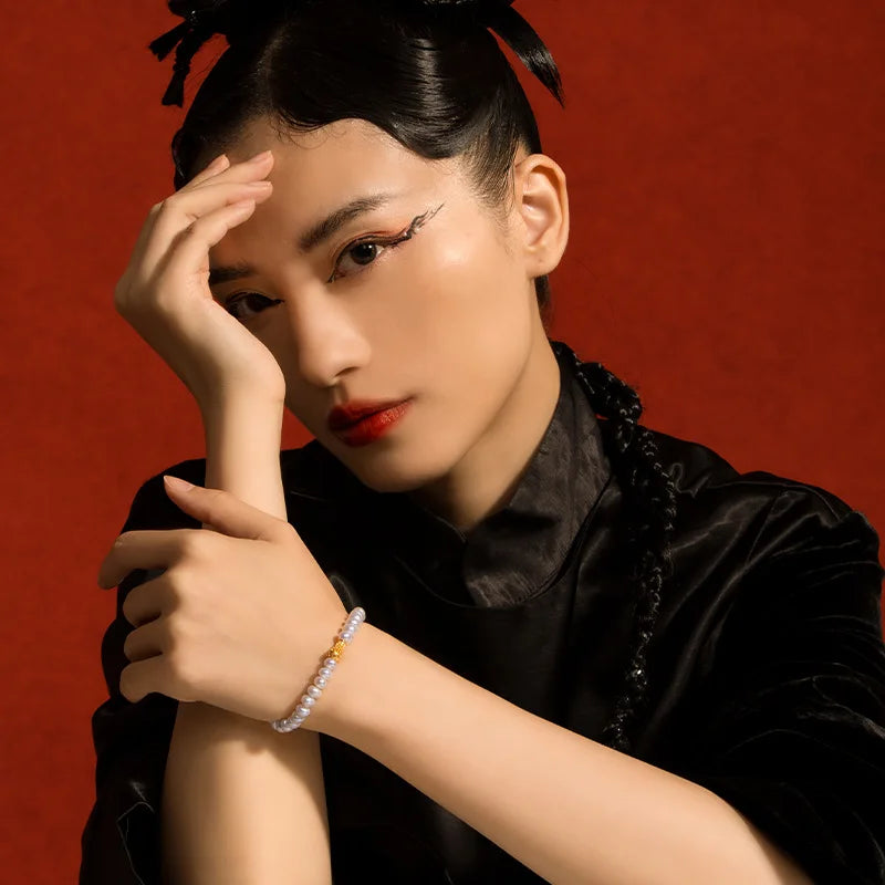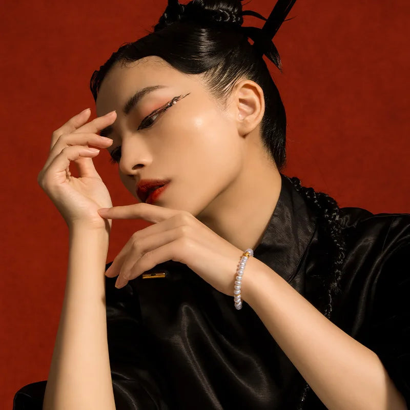 In traditional Chinese aesthetics, pearls embody purity and inner refinement. The phrase "珠联璧合" evokes auspicious union and harmony; worn at the wrist, these pearls become a reminder to cultivate inner harmony and harmonious relationships. The bracelet's continuous form suggests an unbroken cycle — a subtle echo of the natural rhythms prized by classical thought.