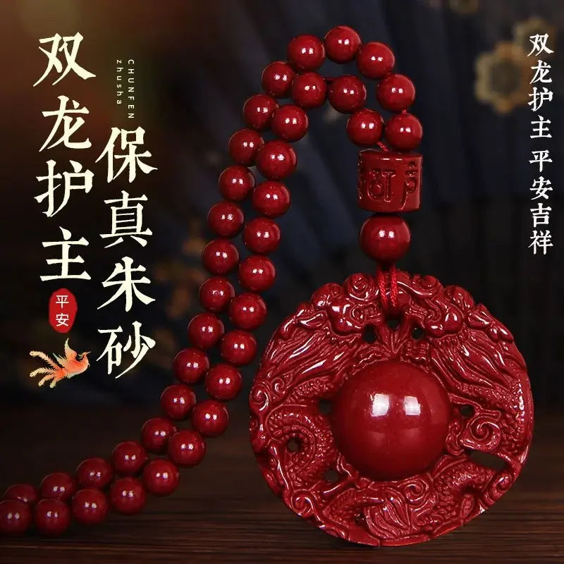 In traditional feng shui lore, Guan Gong stands as the embodiment of loyalty, justice, and protective might. Cinnabar, with its ancient vermilion glow, was long used by ritual masters as a medium to carry auspicious intent. This pendant pairs the martial dignity of Guan Gong with twin dragons—symbols that coil energy, ward off malice, and guide wealth toward the wearer.