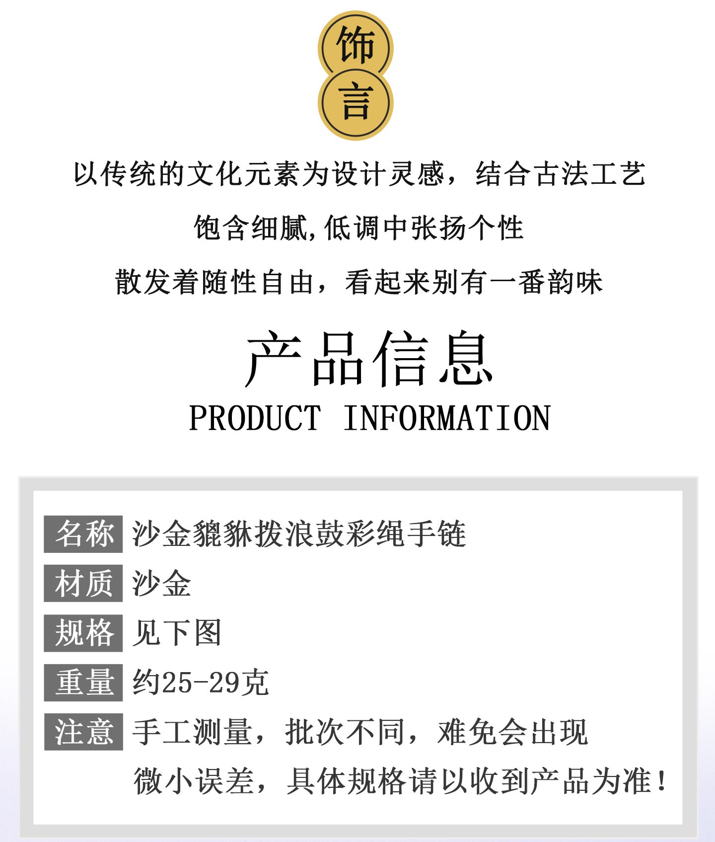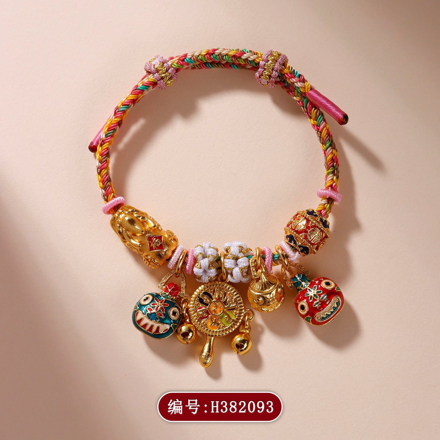 In the annals of Chinese mysticism, the Pixiu stands as a legendary creature of immense power, known for its ability to attract wealth and repel misfortune. Similarly, the Gold Swallowing Beast embodies the essence of abundance, swallowing negativity to leave behind pure gold. This Golden Pixiu and Wealth Beast Family Bracelet draws upon these ancient symbols, crafted with golden sand and enamel on a Tibetan-style braided rope. The design, featuring a family of three, echoes the Confucian ideal of harmony, where unity brings boundless blessings.