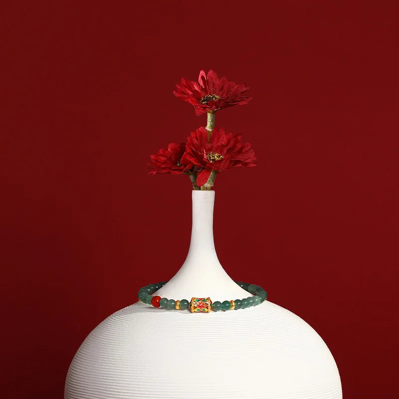 From the perspective of folk feng shui, green is associated with growth and wood energy, which nourishes and promotes vitality. The Tibetan-silver accents, with their antiqued finish and ethnic motifs, bring an earthy restraint that grounds the piece. Together they form a small, balanced assemblage: growth softened by wisdom, shine tempered by age. Wear it alone for a single-line statement, or layer it with metallics and fabrics to build a personal talisman of style and intent.
