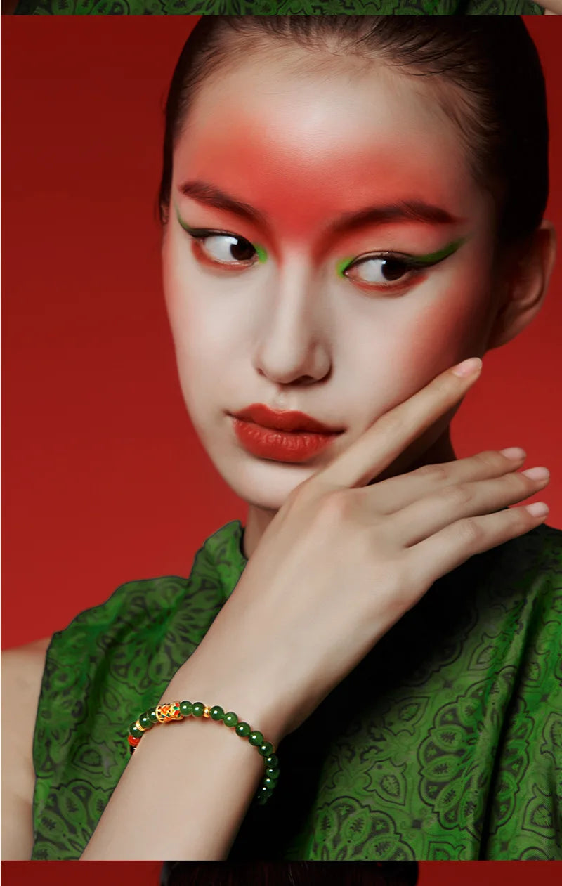 As the ancients taught, virtue attracts harmony. Whether you read the piece as a feng shui ally, a Daoist miniature, or simply a beautiful object, its promise is practical: to remind, to comfort, and to adorn. The green transfer beads will gleam differently with each wearer and each hour, responding to skin tone, light, and movement — a small, living jewel that ages into memory.