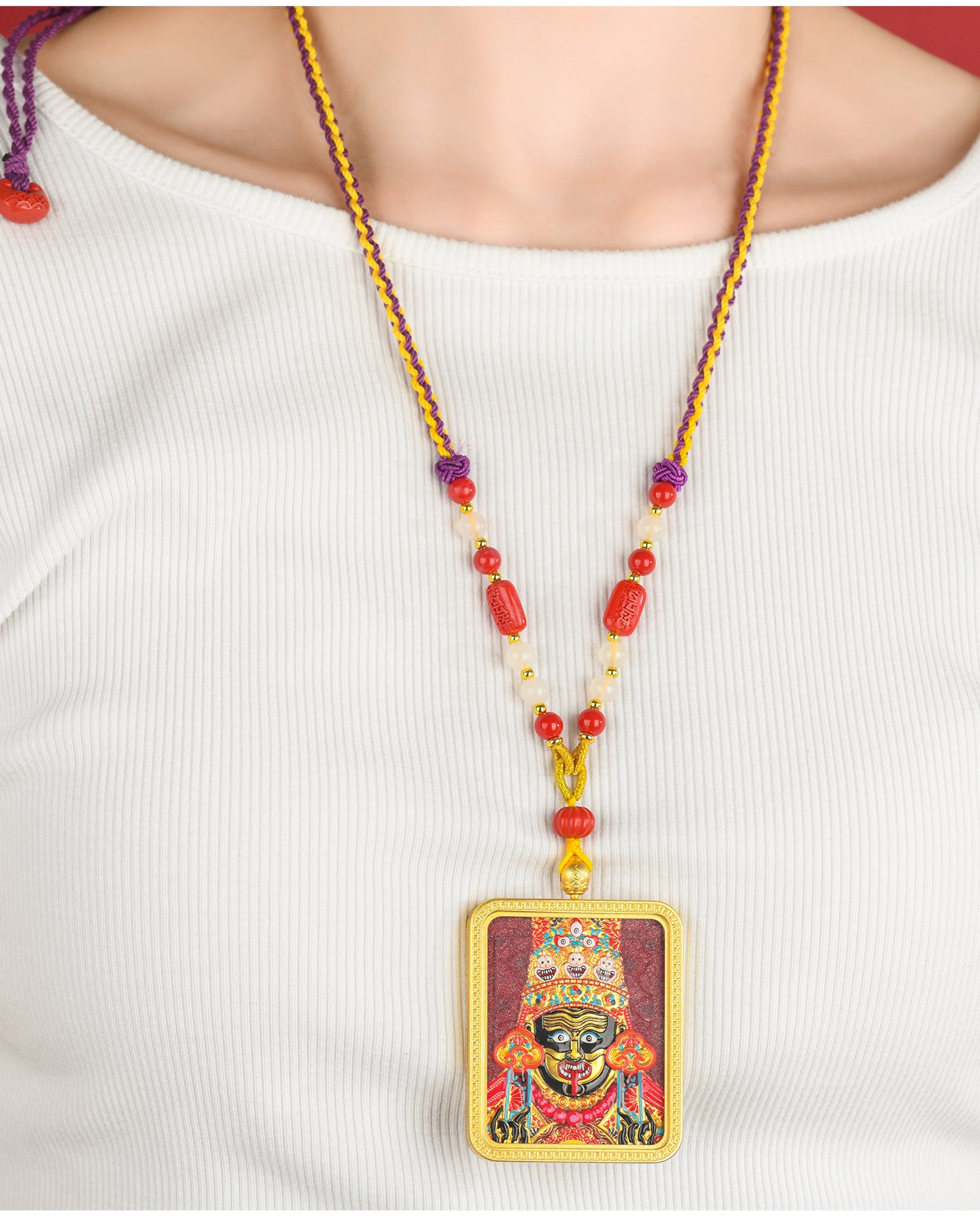Featuring a meticulously carved Thangka design, this pendant embodies Tibetan spiritual artistry and divine protection.