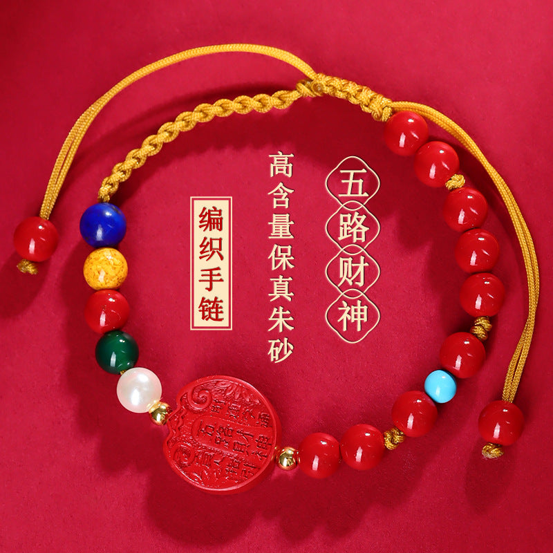 In the annals of Chinese tradition, red sand has long been revered as a stone of vitality and protection, embodying the essence of fire and earth. Ancient texts describe it as a conduit for positive energy, capable of warding off negativity and inviting abundance. This Imperial Red Sand Five-Way Wealth God Braided Bracelet draws from this heritage, featuring natural red sand stones meticulously woven into a design that honors the five paths of wealth—symbolizing prosperity from all directions.