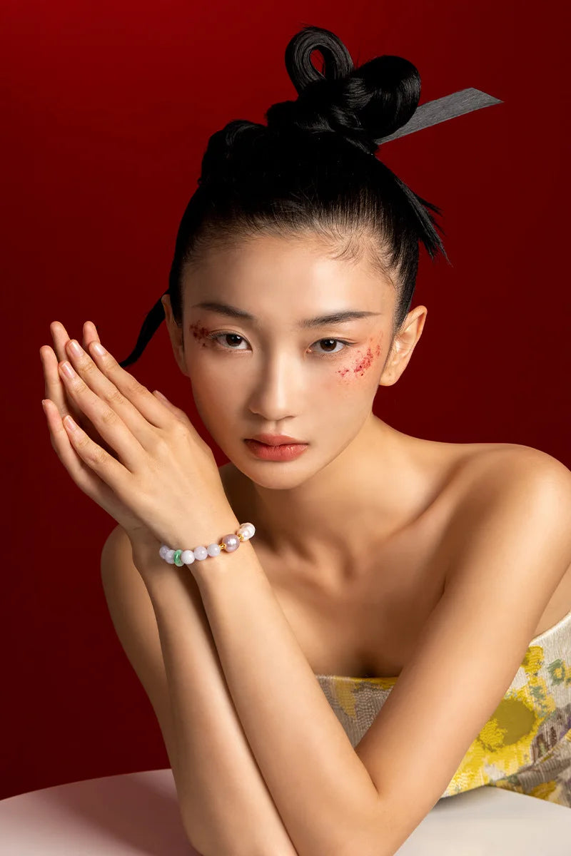 A thoughtful blend of natural jadeite, freshwater pearl and two‑tone metalwork—designed for gifting and daily harmony.
