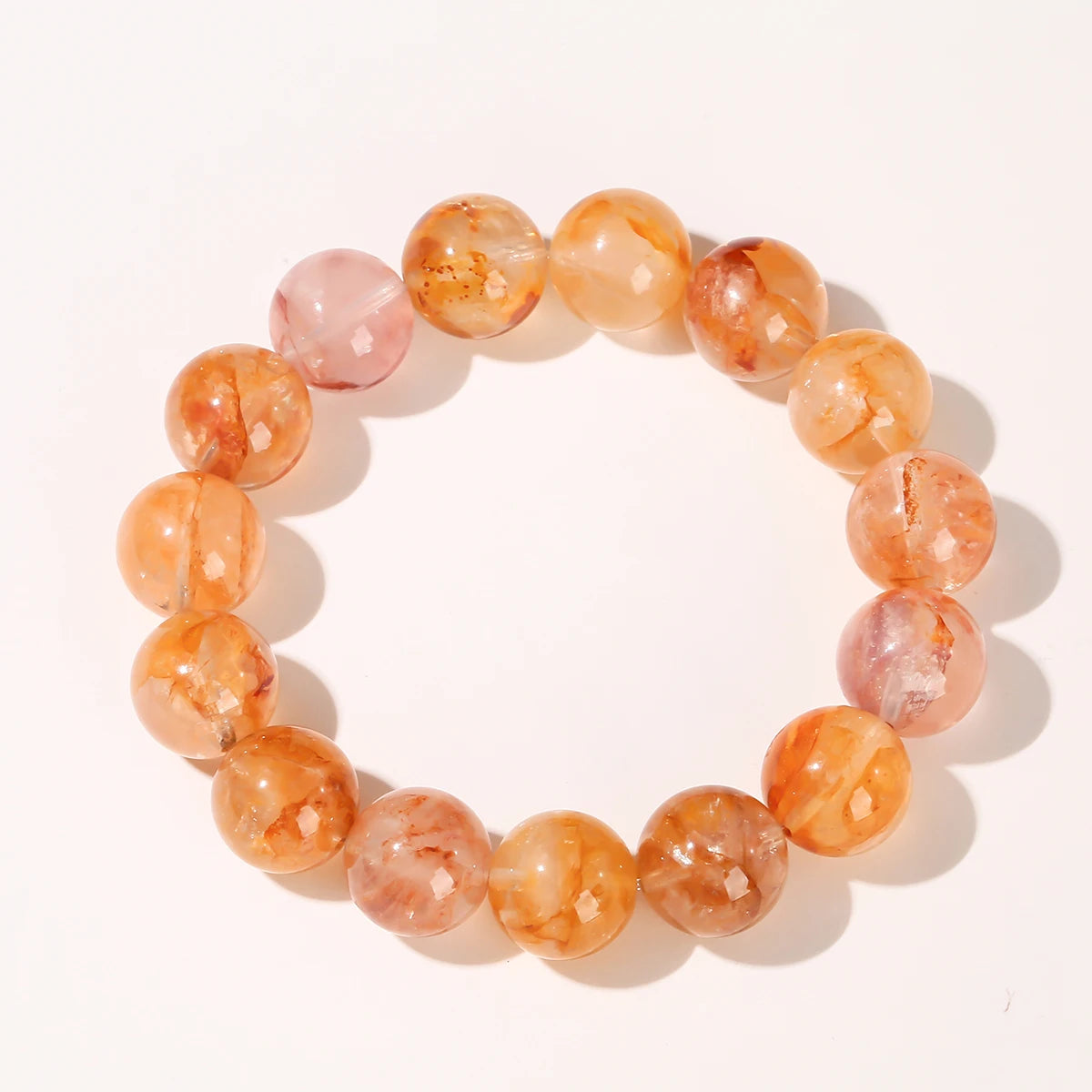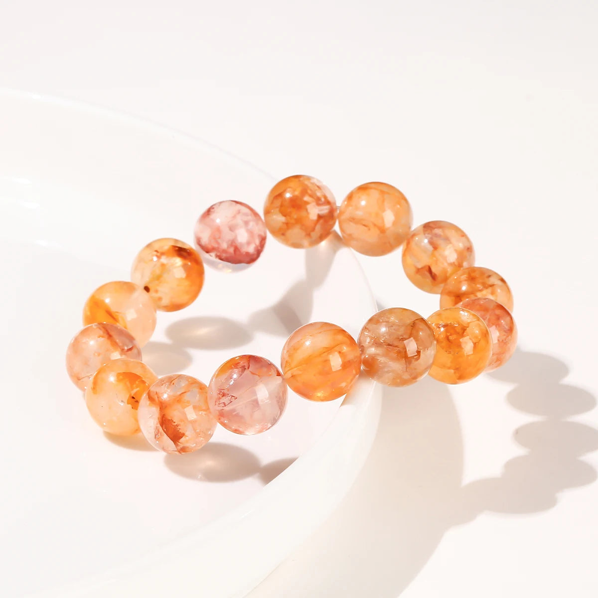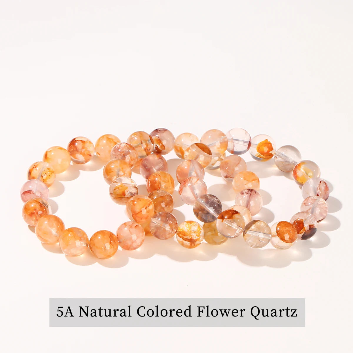 此款天然花朵水晶手链选用多彩天然石英珠,珠内纹理似花蕊绽放,每颗都独一无二。单圈弹力设计,象征循环不断的福运和顺流之气,佩戴在腕间如同栽下一株随身护花,日日开运护身。