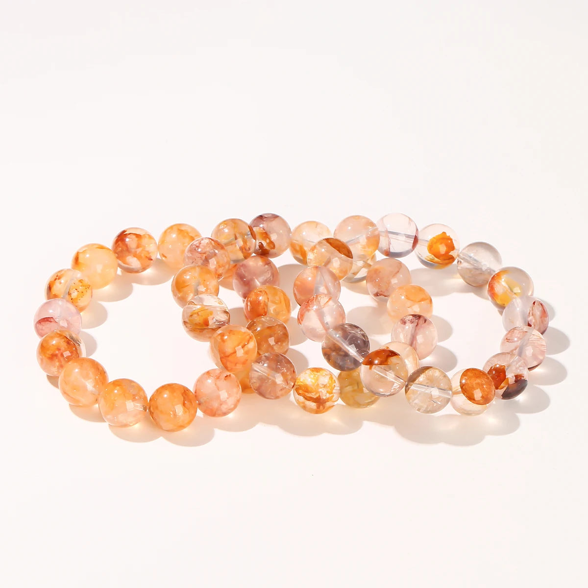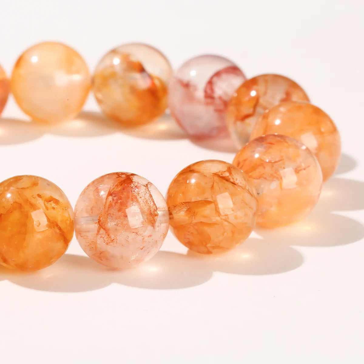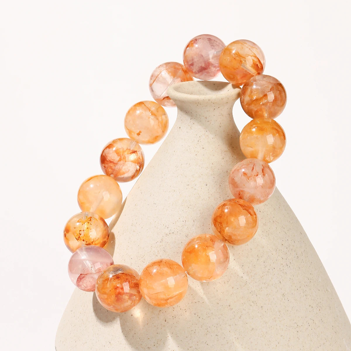 此款天然花朵水晶手链选用多彩天然石英珠,珠内纹理似花蕊绽放,每颗都独一无二。单圈弹力设计,象征循环不断的福运和顺流之气,佩戴在腕间如同栽下一株随身护花,日日开运护身。