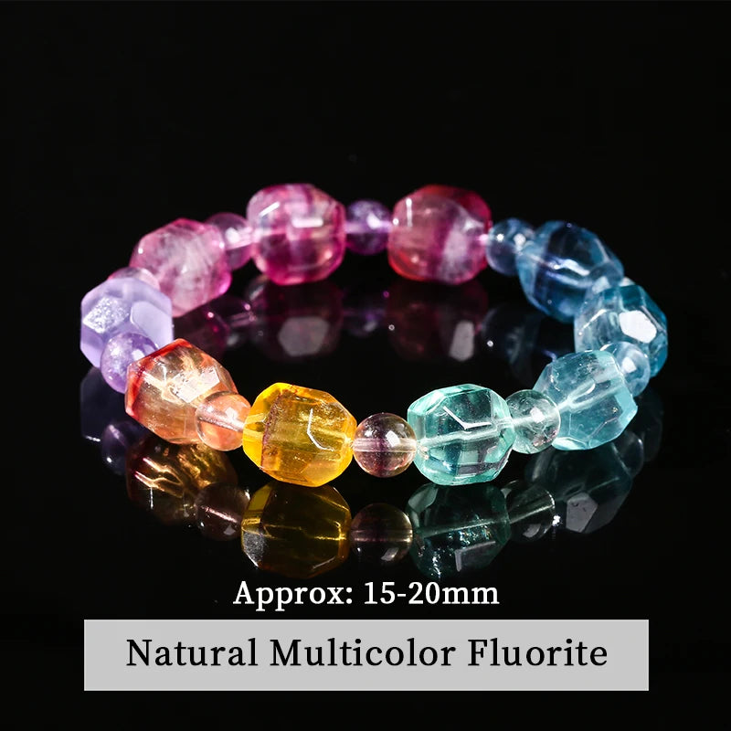 这款多色萤石切面不规则水晶手链,以天然萤石为主体,采用不规则几何切面与精细抛光,令每颗珠子在动静间闪现不同光泽。弹力串设计便于每日佩戴,贴合手腕时犹如将一片能量柔霭环绕于身侧。