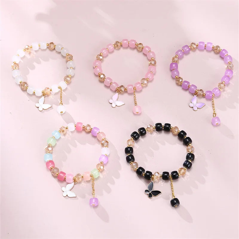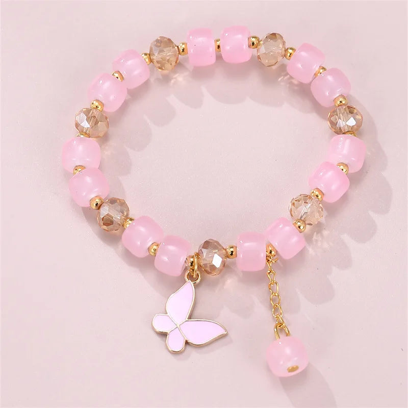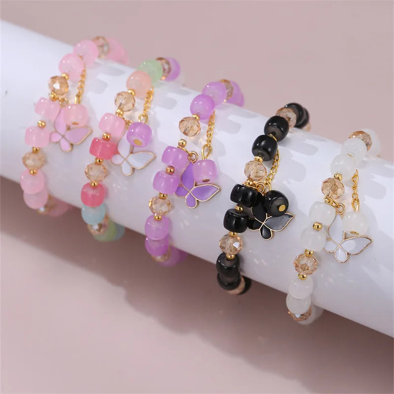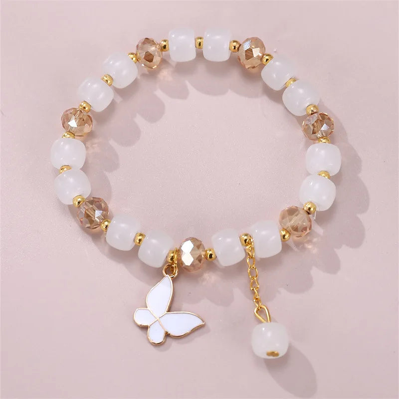 这款手工串制的夏日蝴蝶晶珠手链,以蝴蝶为核心意象,辅以晶莹水晶与金属光泽,寓意由内而外的清朗与守护。佩戴者如同携带一只小小的护符,每一次轻颤都在提醒:旧事可释,新运可期。