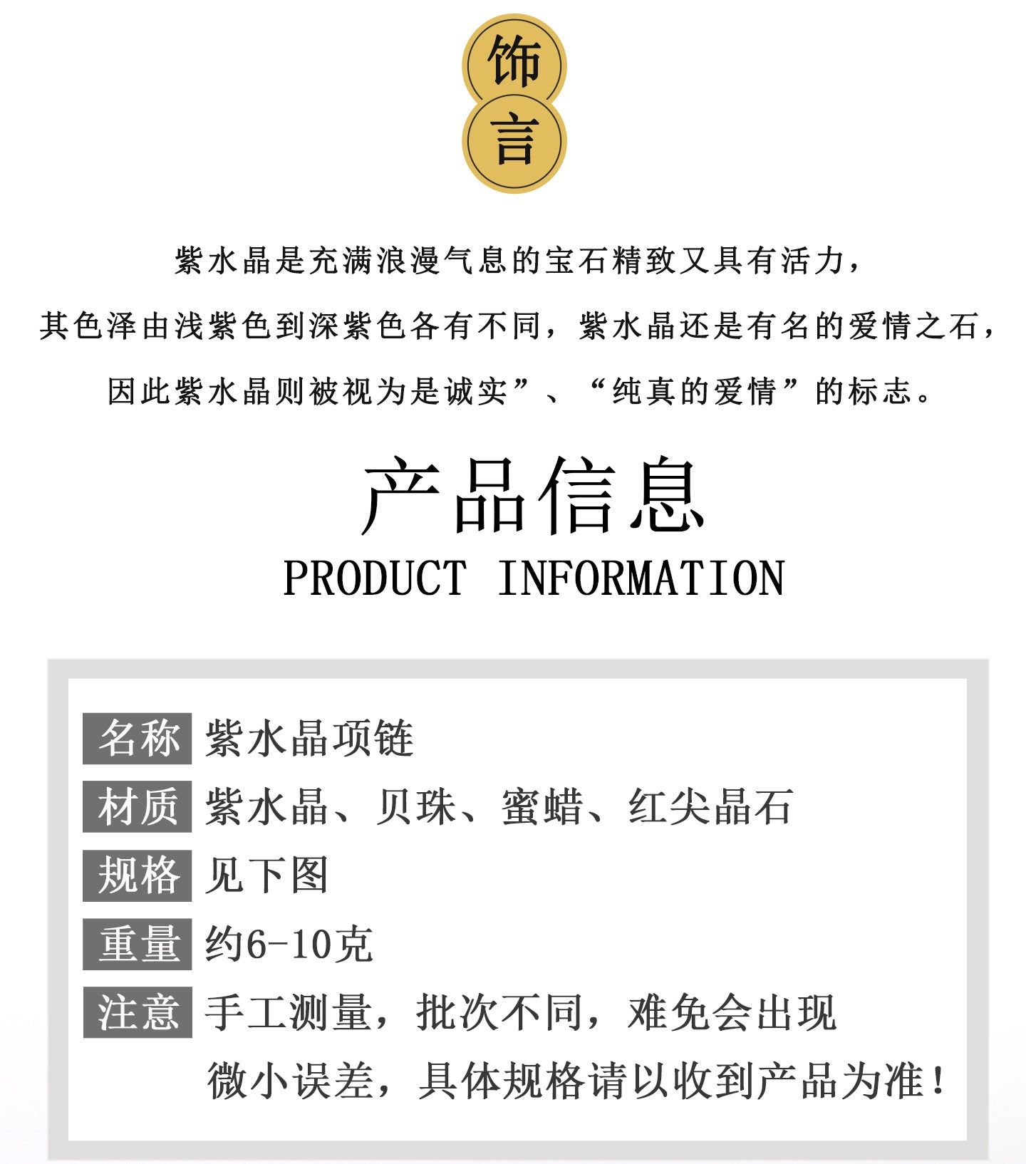 Just as the amethyst refines one's inner clarity, this necklace serves as a reminder to nurture wisdom and compassion. Its collarbone-length design aligns with the body's energy meridians, promoting a harmonious flow of qi (life force) and helping to dispel negative influences. In Daoist philosophy, the balance of opposites is essential—the amethyst's cool, calming energy complements the metal chain's strength, creating a unity that supports emotional stability and personal growth.