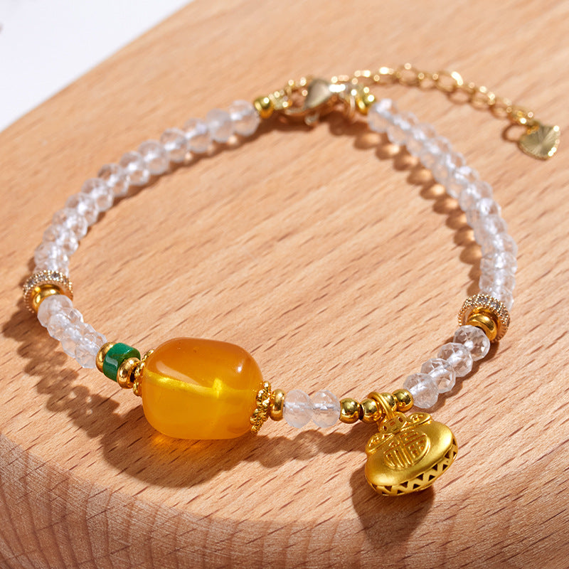 Feng shui masters often speak of crystal's ability to amplify positive energy and amber's role in grounding it. This bracelet's Chinese-style design incorporates these elements seamlessly, with the carved discs representing the moon's serenity and the barrel beads echoing the sun's vitality. In folk traditions, such combinations are believed to ward off misfortune and invite luck, as the saying goes, "Clear crystal clears the mind, golden amber gathers gold." Wearing it is not merely an act of adornment but a daily ritual to align with the universe's benevolent forces.