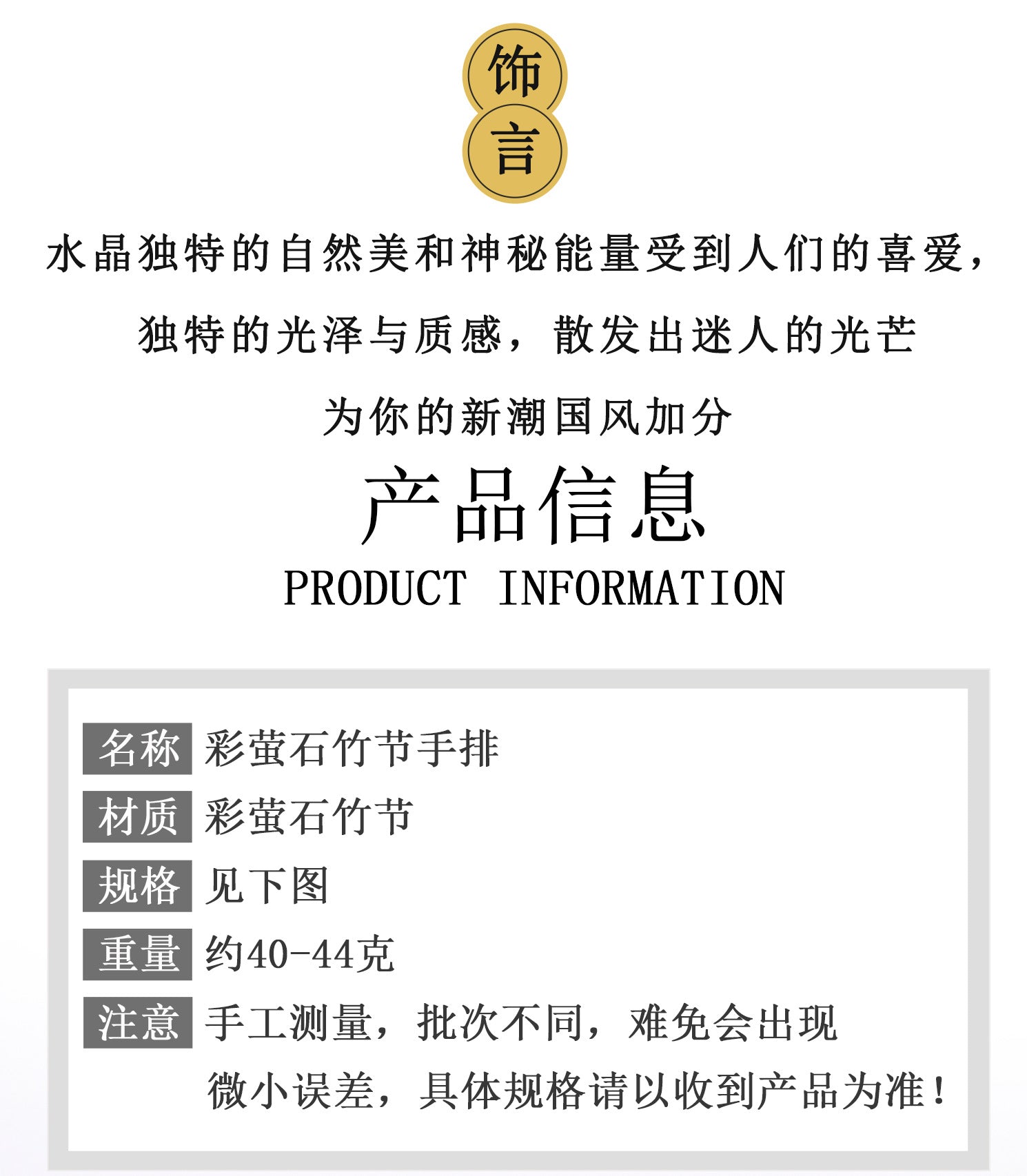 In Feng Shui, fluorite is used to purify spaces and attract abundance, while bamboo knots are believed to lock in prosperity and growth. The single circle design signifies unity and eternal flow, reflecting the Buddhist concept of Pratityasamutpada—interconnectedness. As you wear this bracelet, it serves as a reminder to stay grounded yet open, embracing life's changes with grace.