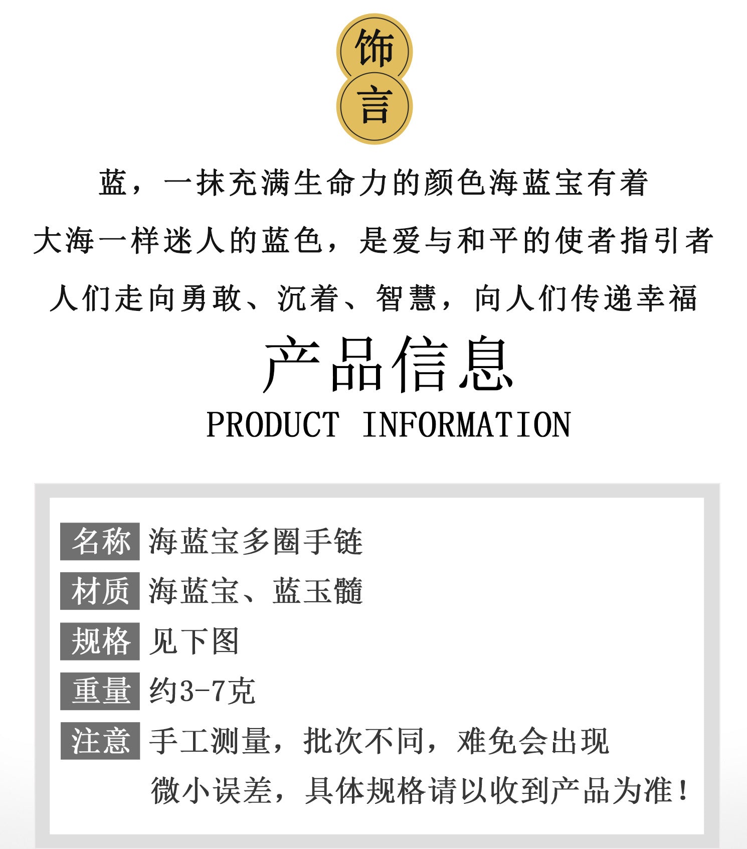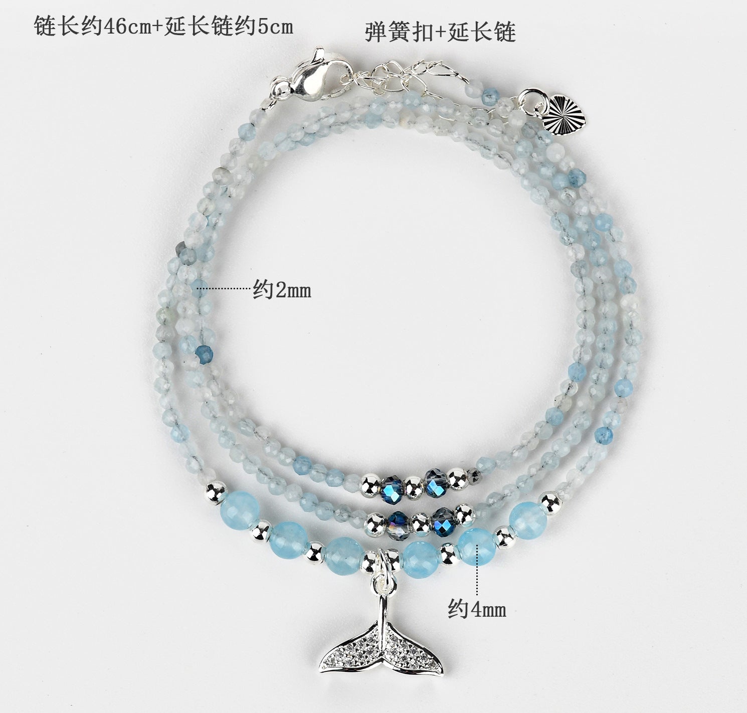 In feng shui practices, water elements are linked to wealth and career success. The flowing design and blue stones symbolize abundance and smooth progress in endeavors. Placing or wearing this bracelet can help activate the wealth sector of your life, as the old adage goes, "Like a river, let prosperity flow uninterrupted." The multi-layer structure represents layered blessings—health, love, and fortune—accumulating over time.