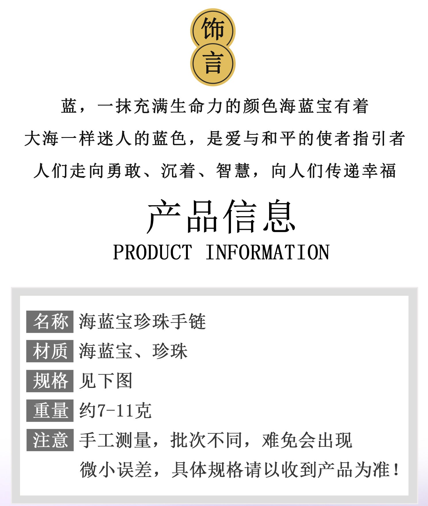 | Material | Natural Crystal, Aquamarine, Pearl |