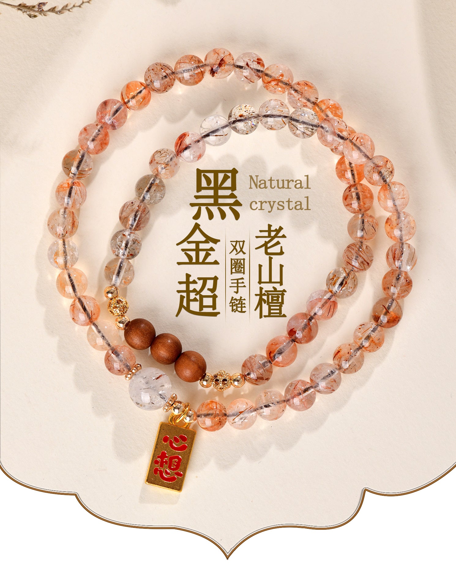 In the ancient traditions of the East, natural crystals have long been revered as vessels of cosmic energy, capable of harmonizing the soul and attracting prosperity. This Natural Crystal Black Gold Super Seven Laoshan Sandalwood Double Circle Bracelet embodies this wisdom, weaving together the earthy essence of sandalwood with the luminous power of crystal. As the I Ching teaches,