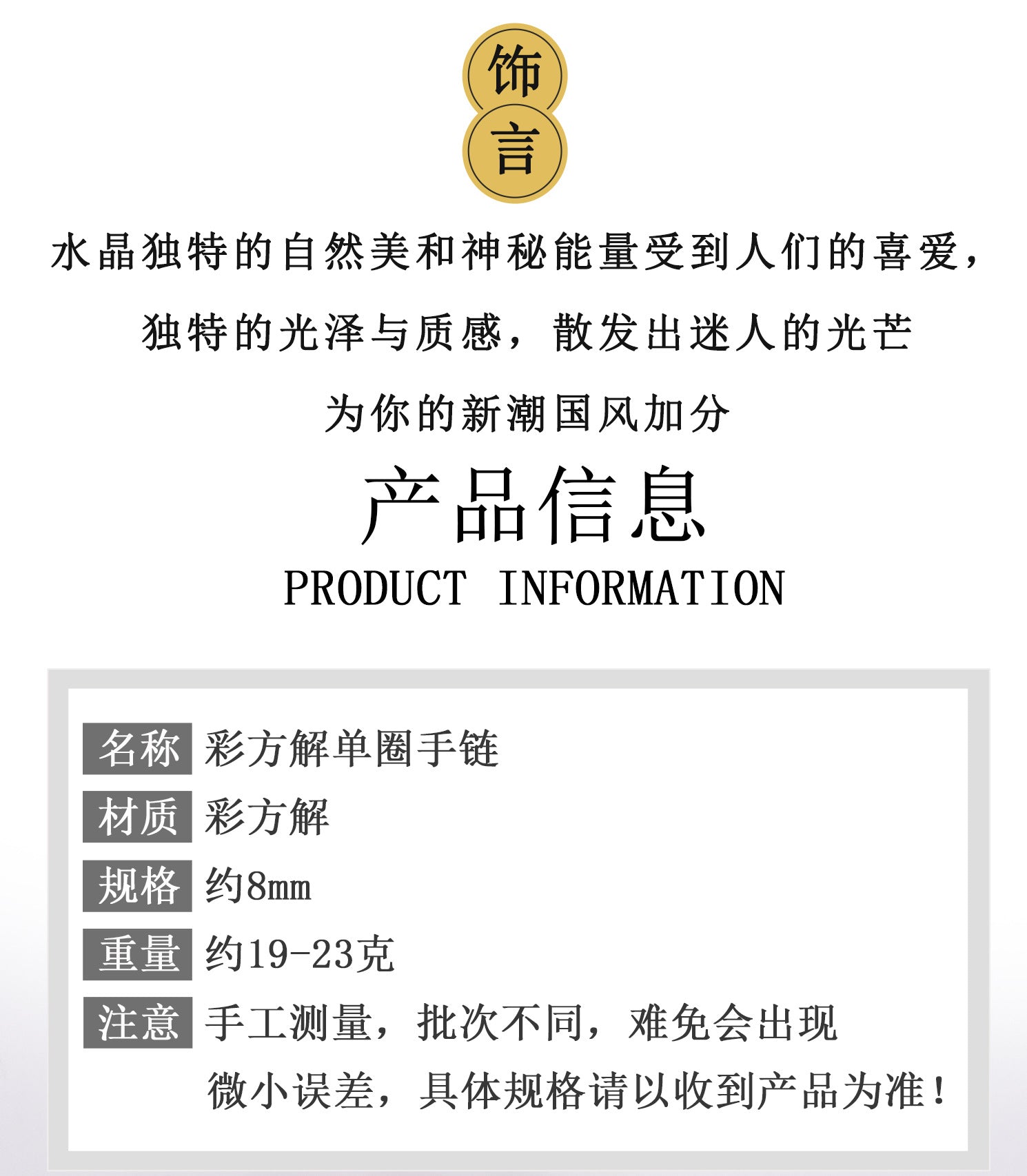 Feng shui principles further enhance its value. Crystals are known to attract auspicious chi, and the single circle design prevents energy stagnation, encouraging wealth and health to flow freely. Whether worn daily or during meditation, this piece acts as a personal talisman, aligning the wearer with cosmic rhythms and inviting serendipity into their life.