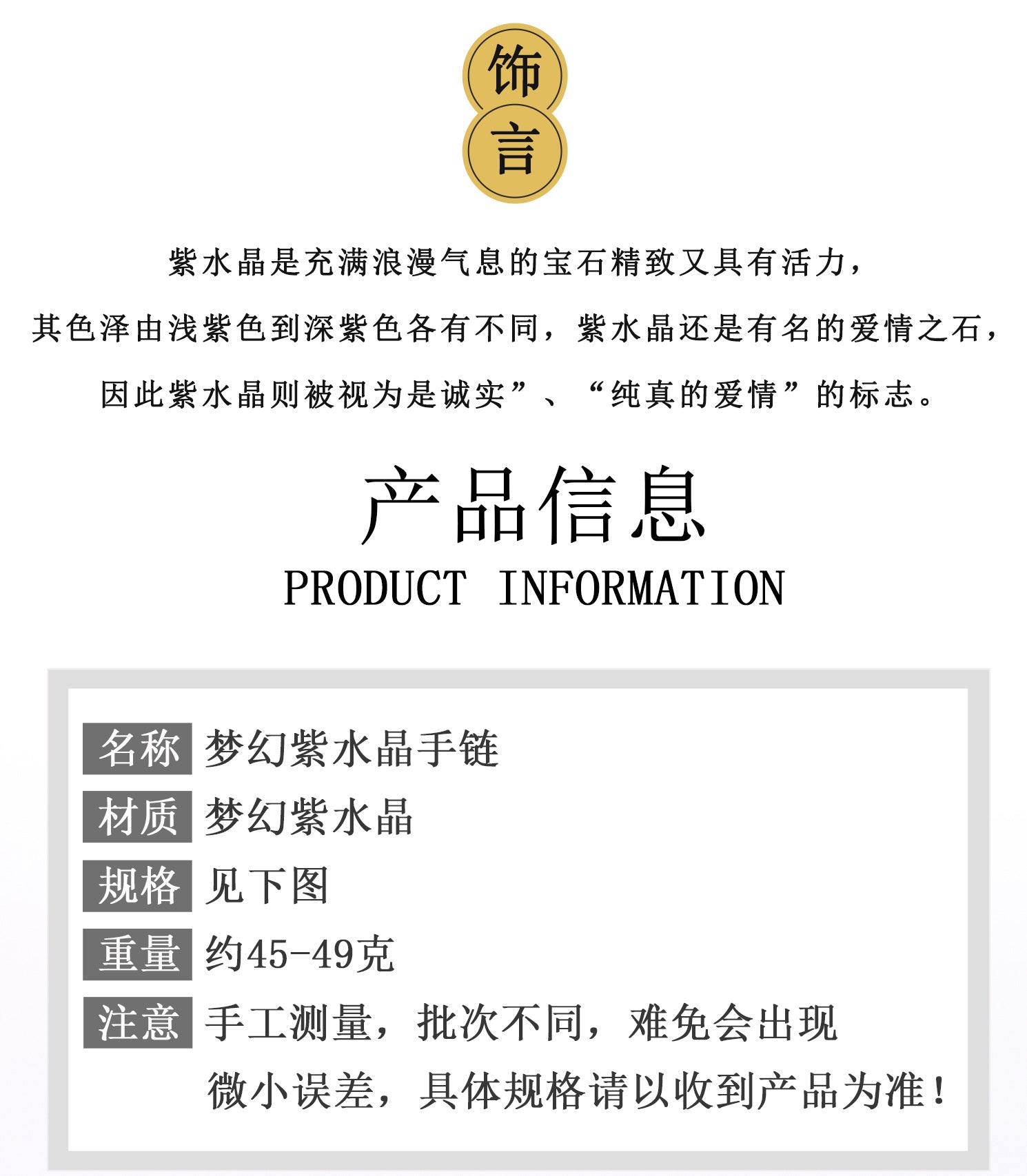 'The Way gives birth to One, One gives birth to Two, Two gives birth to Three, Three gives birth to all things.'The amethyst's natural formation aligns with this cosmic flow, enhancing spiritual growth and emotional healing. Its romantic design, featuring smooth, polished beads, symbolizes the union of hearts and the pursuit of true connection. In Buddhist tradition, amethyst is linked to tranquility and enlightenment; wearing this bracelet can quiet the mind during meditation, opening the heart to compassion and deeper understanding.