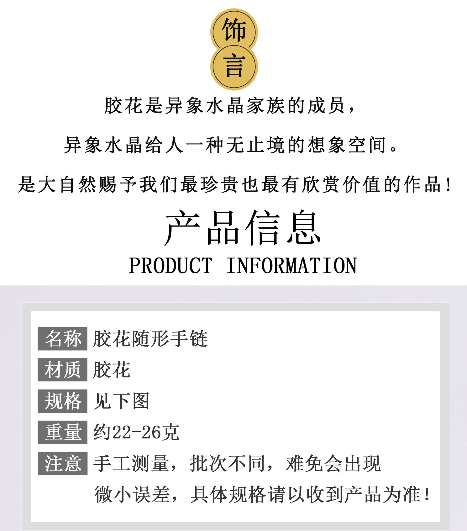 'The great man is he who is in harmony with his time.'This bracelet, with its natural crystal and glue flower inclusions, embodies the eternal dance of nature—where imperfections become symbols of beauty and resilience. Each irregular circle mirrors the cycles of life, reminding us that true fortune lies in embracing change.