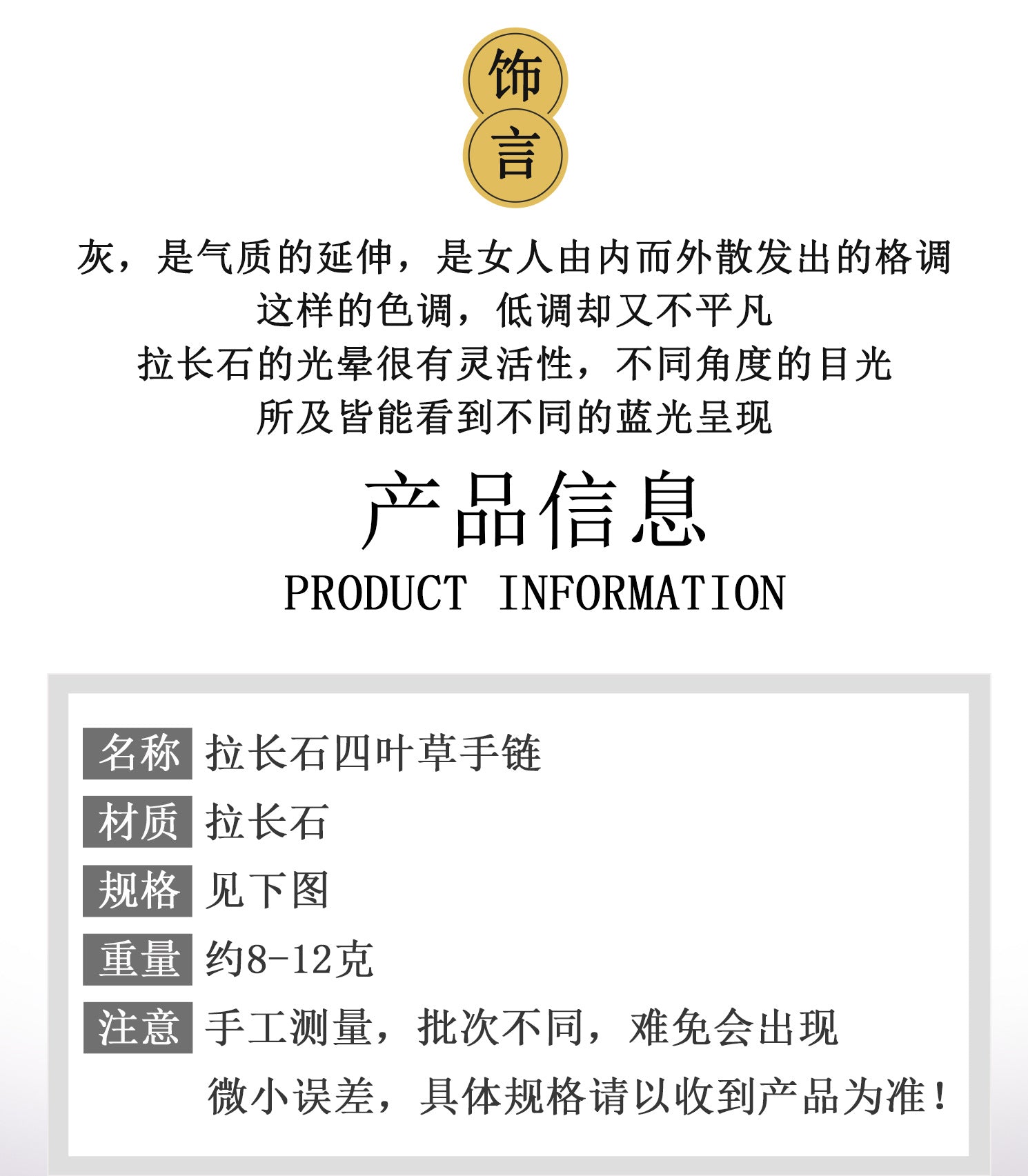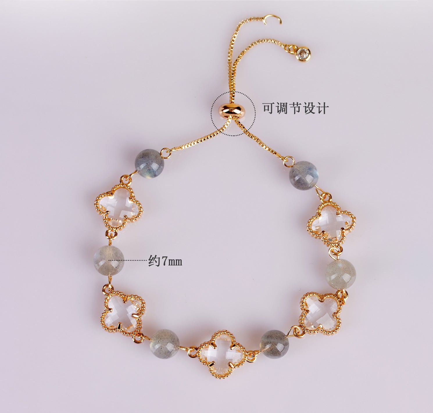 In the ancient traditions, crystals have long been revered as bridges between the earthly and the divine. Labradorite, with its captivating iridescence, is often called the \"stone of magic,\" for it reflects the hidden lights within the soul. This Natural Labradorite Four-Leaf Clover Bracelet weaves together the essence of protection and serendipity, much like the interplay of yin and yang in Daoist philosophy. The four-leaf clover, a universal emblem of luck, resonates with the I Ching's wisdom:
