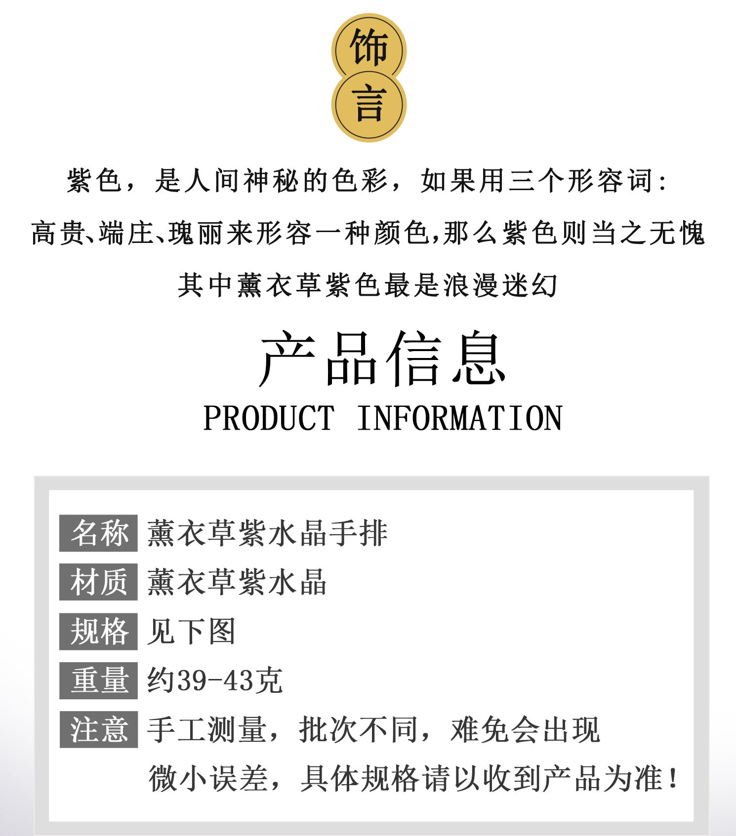 Wearing this bracelet is like carrying a piece of the cosmos, reminding us to flow with nature's rhythms. Its elegant form and romantic purple color inspire love and compassion, aligning with Buddhist teachings on mindfulness and kindness.