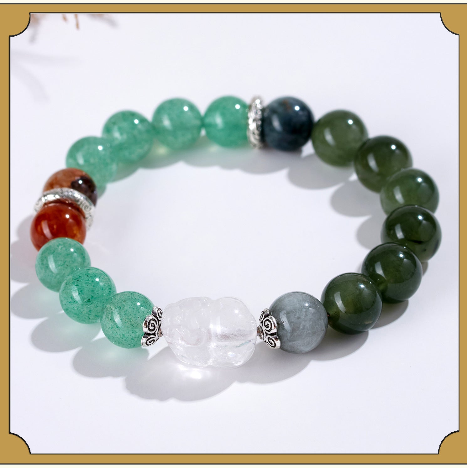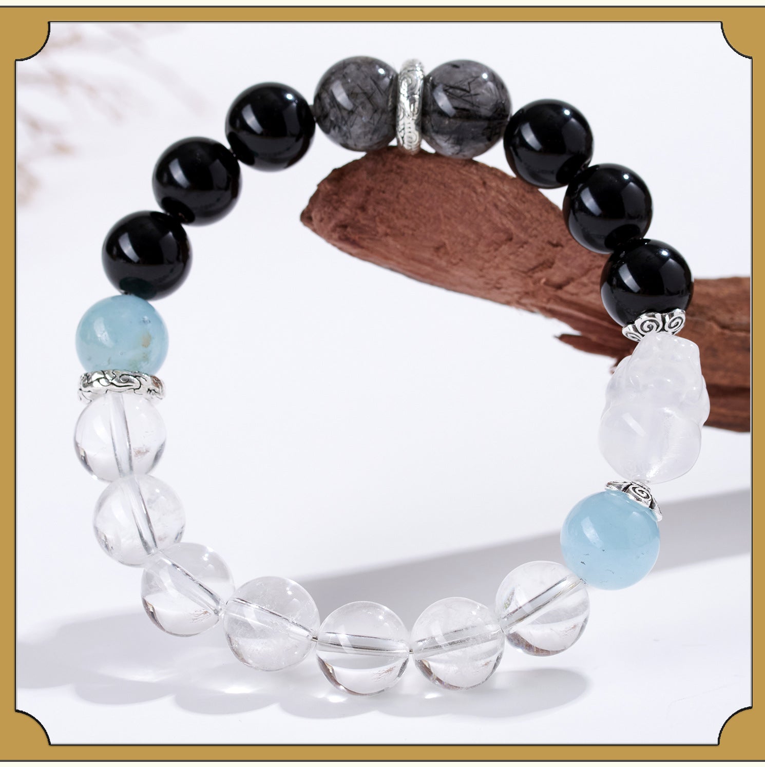 Wearing these crystals helps to dissolve blockages and invite smooth energy flow, much like water adapting to its path. The Lucky Pixiu charm, a revered creature in feng shui, amplifies this effect by drawing wealth and repelling misfortunes. Legend says that Pixiu guards treasures tirelessly, making it a symbol of unwavering abundance. In Buddhist traditions, mindfulness and compassion are key to inner peace; this bracelet, with its soothing colors and textures, encourages a meditative state, reminding wearers to stay present and grateful.