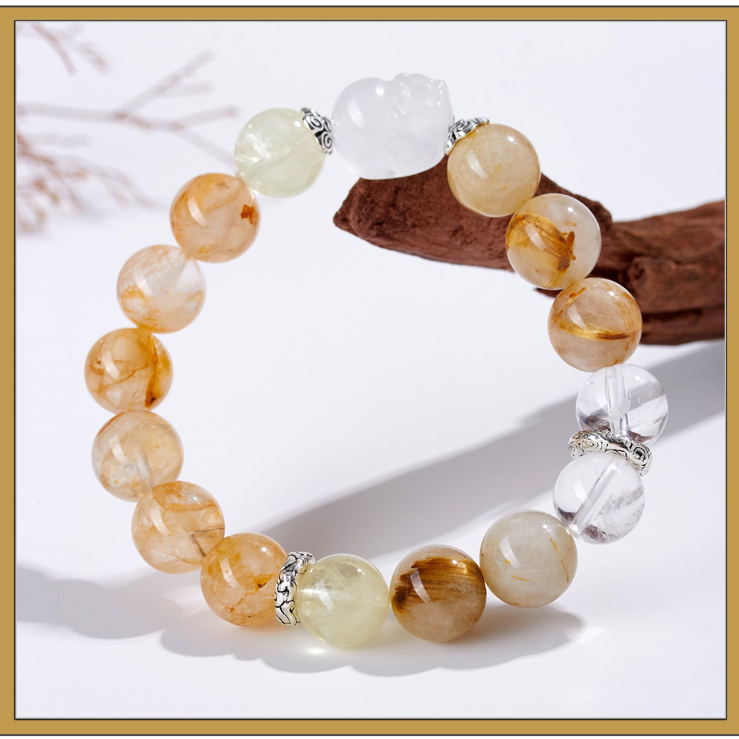 In Daoist philosophy, the balance of yin and yang is essential for well-being. The natural crystals in this bracelet act as conduits for this equilibrium, cleansing and aligning your chi. As Lao Tzu taught,