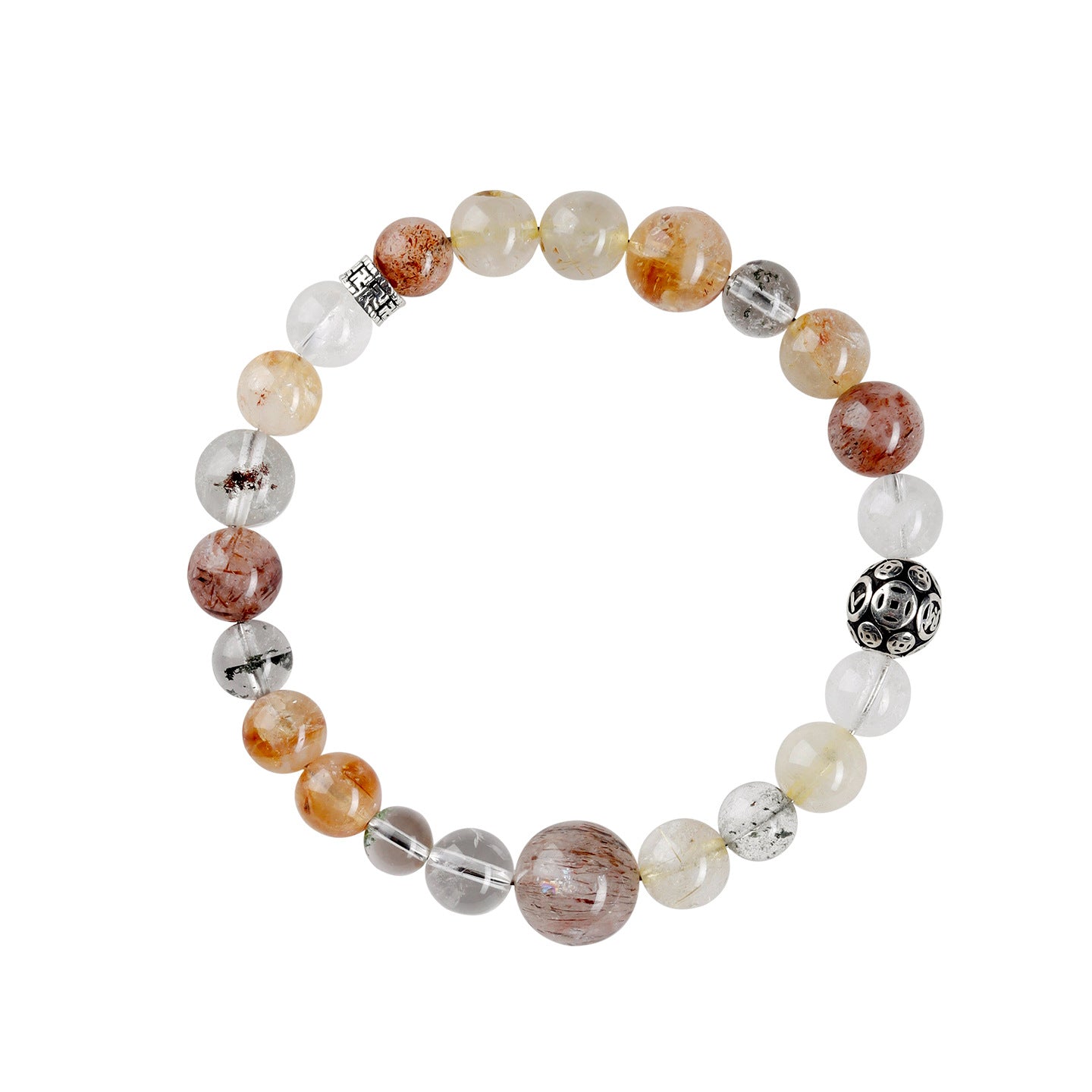 This bracelet integrates Gold, Wood, Water, Fire, and Earth elements through distinct gemstones, promoting cyclical harmony and personal growth.