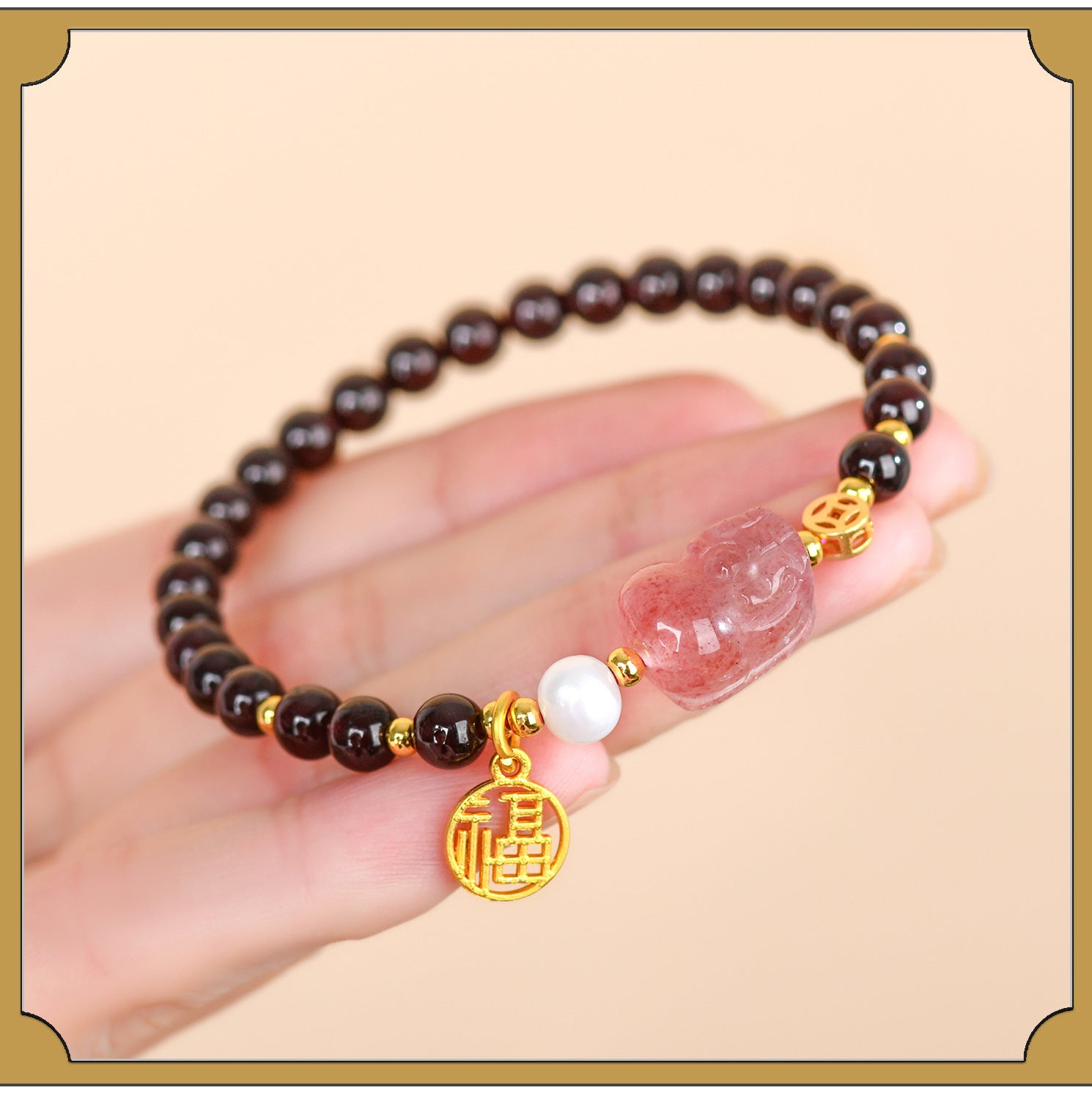 In the depths of ancient lore, crystals have long been revered as vessels of earthly energy and celestial blessings. This Natural Garnet Strawberry Crystal Pixiu Bracelet weaves together the fiery essence of garnet and the gentle allure of strawberry crystal, embodying a harmony that echoes the wisdom of the I Ching: