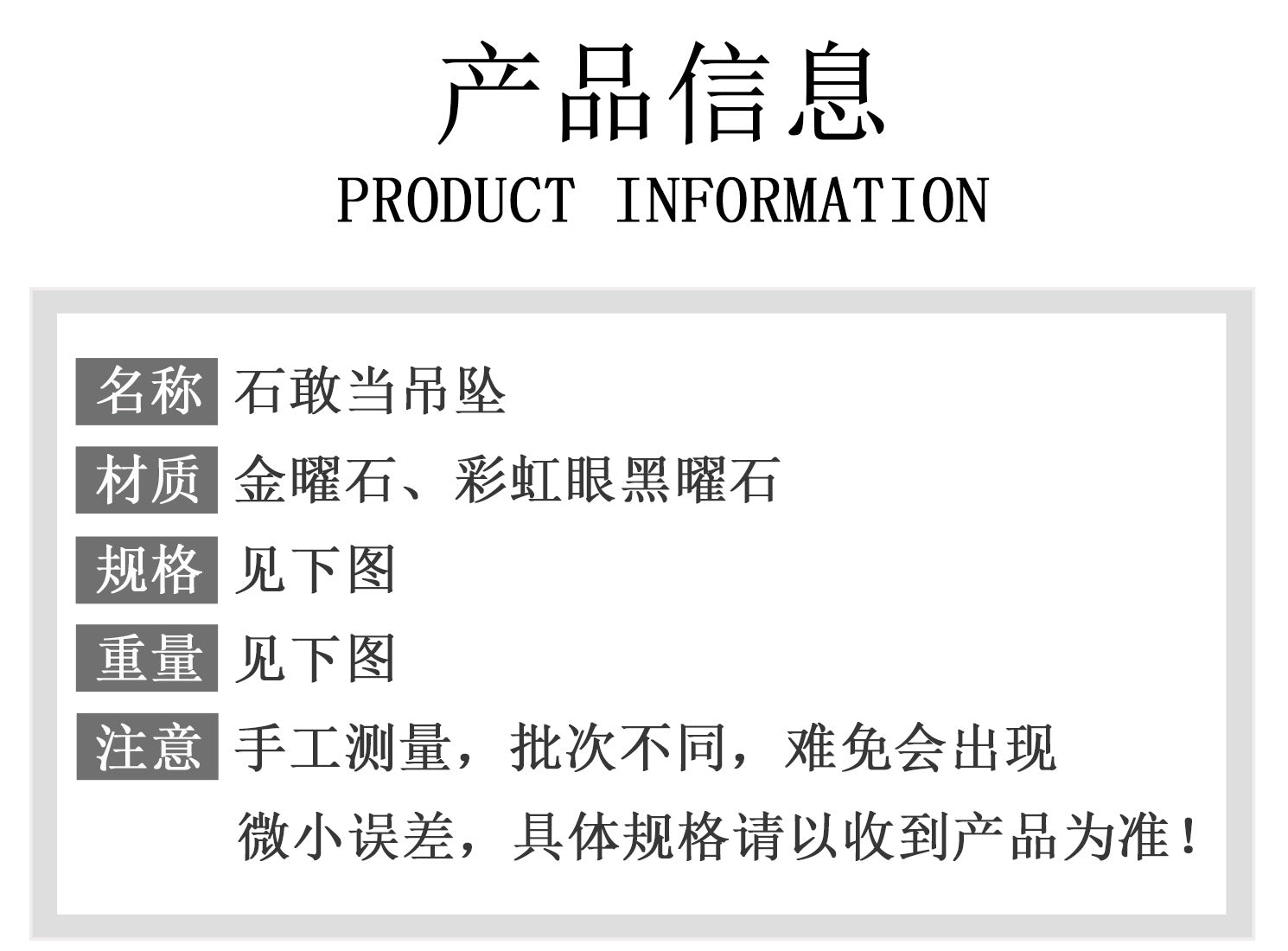 From a Feng Shui perspective, gold obsidian symbolizes fire energy, which ignites passion and drives away stagnation. Worn as a necklace or sweater chain, it can be positioned to enhance specific intentions—for instance, placing the Pixiu facing outward to draw wealth or the Bagua near the heart for emotional balance. As the old adage goes,