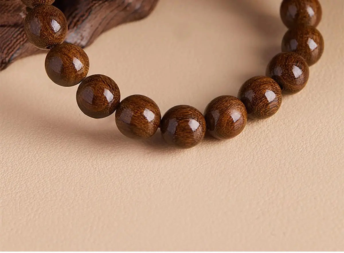这串天然金丝楠木佛珠,选取优质木料,手工打磨成圆润珠形,辅以清透水晶隔珠,既保留木香又添一抹灵性光泽。佩戴者据说能感到胸中气场渐安,烦躁之心如被轻风拂去,恍若回到寺院钟声之后的净心时刻。