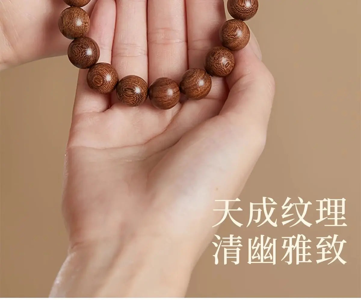 收到后第一时间闻到淡雅木香,金丝楠木的纹理在灯光下微微闪烁,珠子圆润光滑,戴着念佛冥想时心境安定,既有仪式感又适合日常佩戴,十分值得收藏。